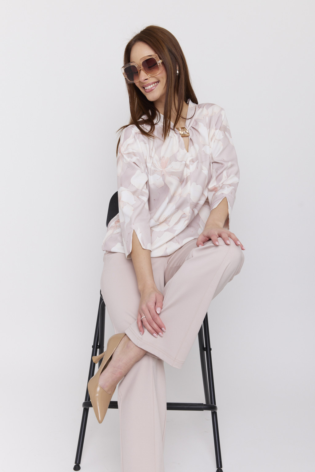 BELLY női blúz – gumis aljú, díszcsatos, mintás alkalmi blúz,M,Tara X Vitkori