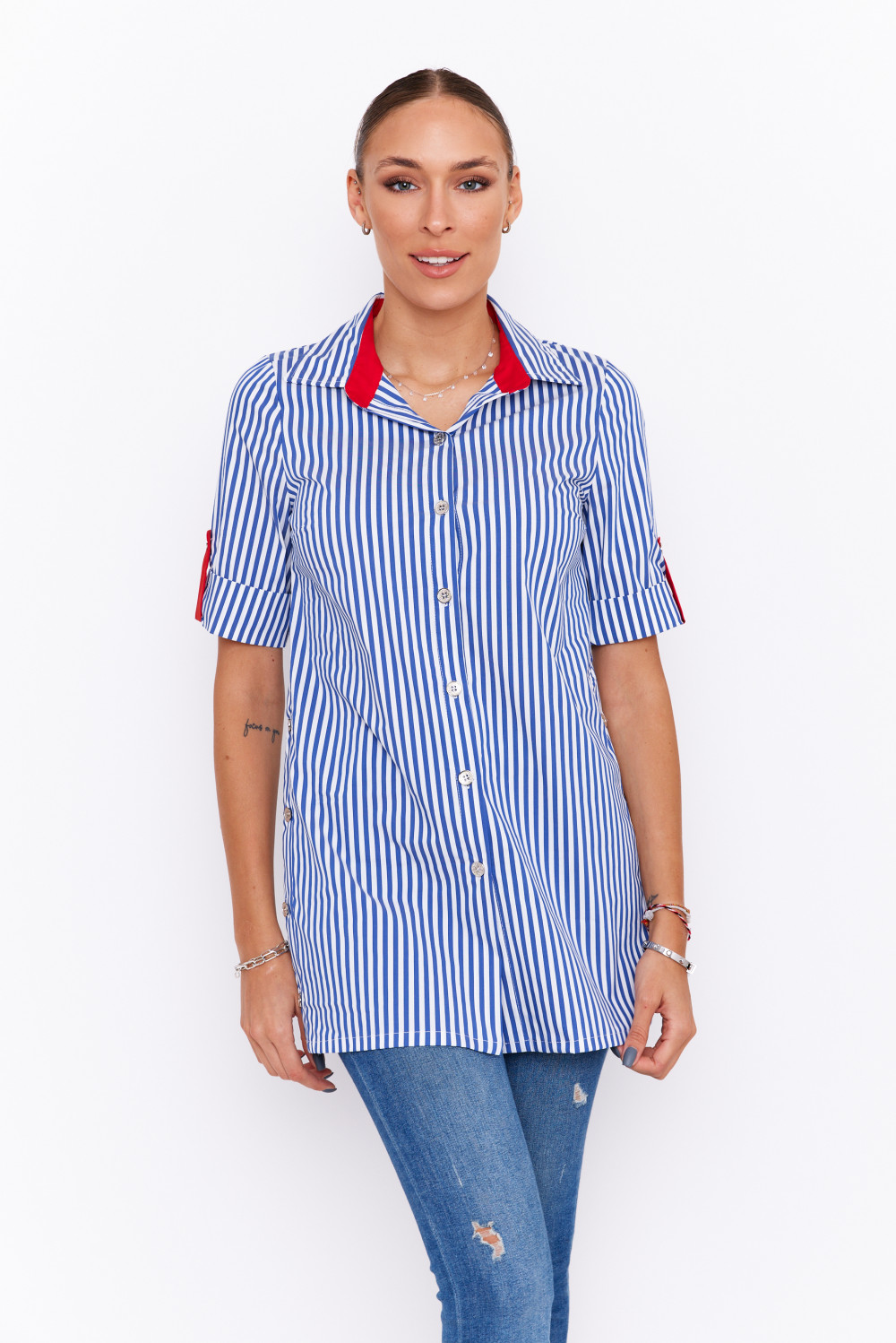 Boglárka női ing, ingtunika, galléros, oldalán gombokkal díszített,csíkos,S Tara x Viktori