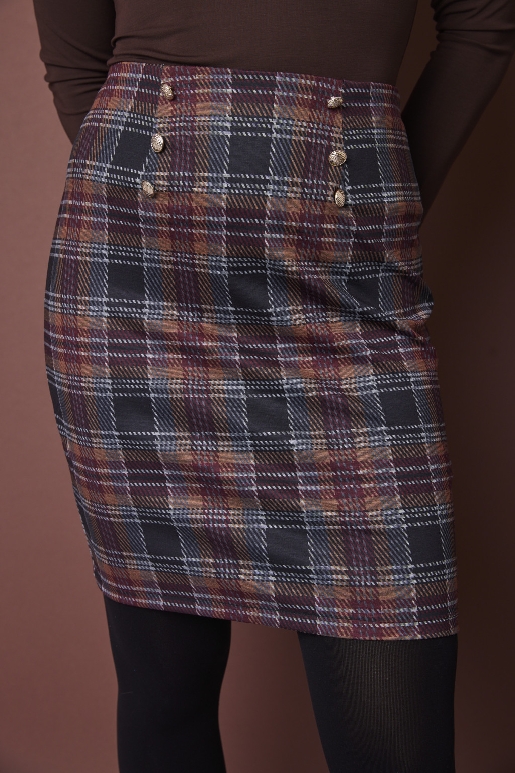 REBECCA women’s fitted checkered skirt with 6 decorative buttons