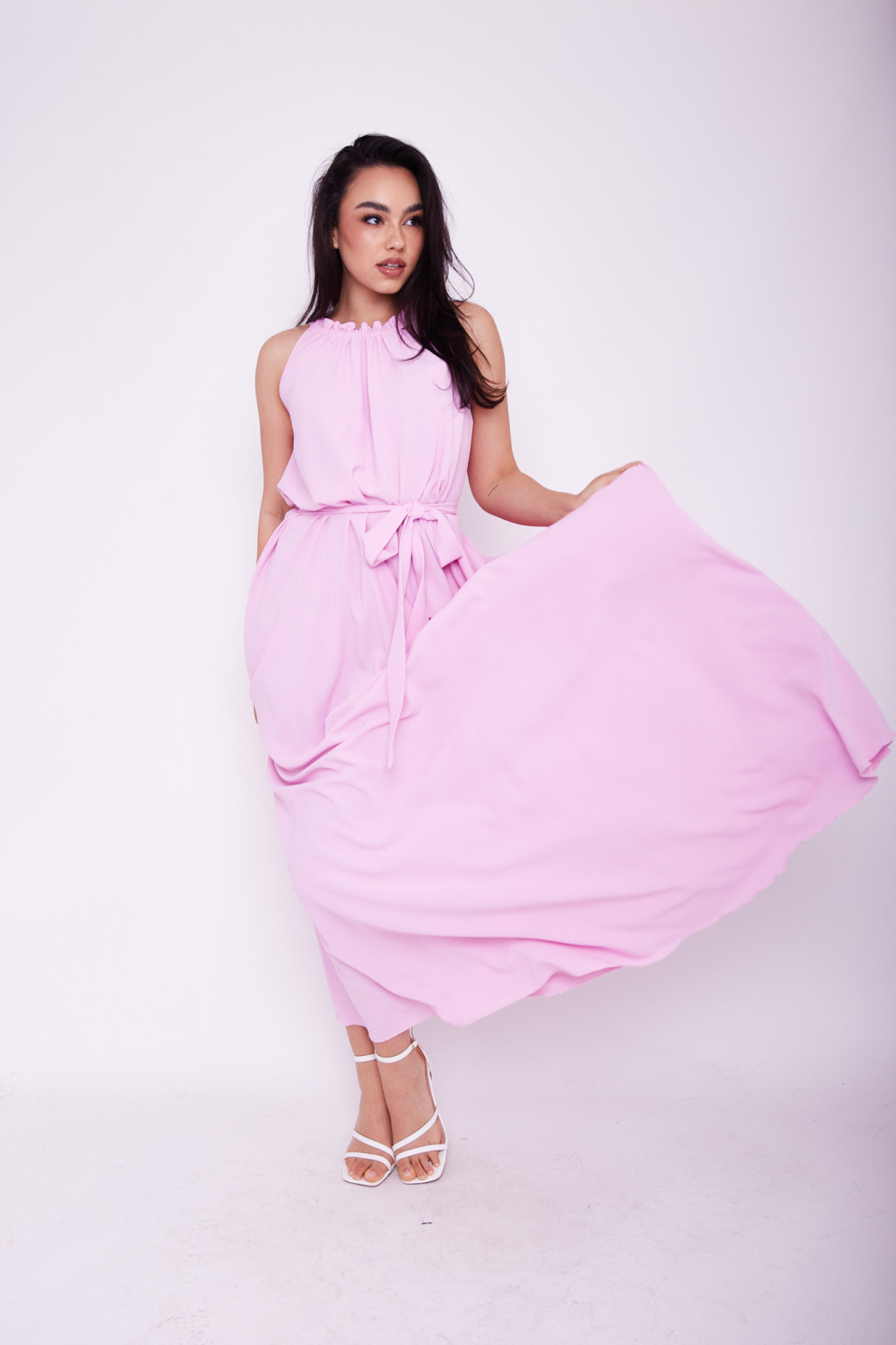 MIAMI női maxi ruha,húzott nyakkivágású,öves,ujjatlan hosszú ruha,rózsaszín,onesize,Tara X Viktori,Young and Free