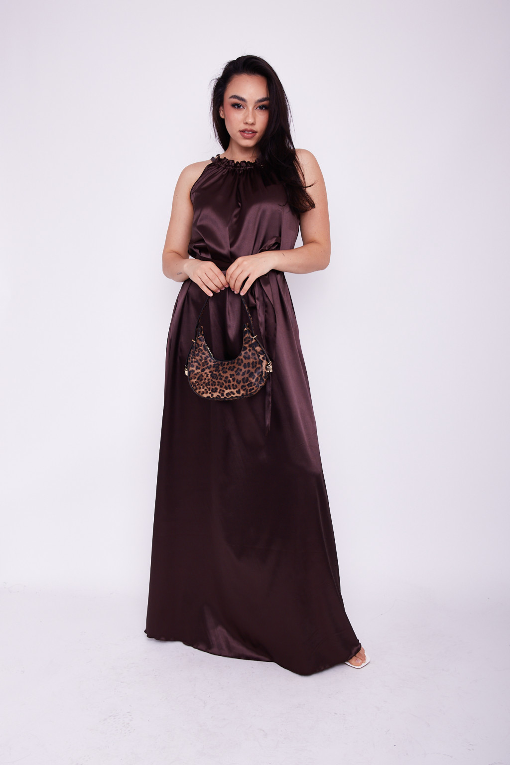 Miami női ruha, húzott nyakú maxi ruha,barna,Tara x Viktori, Young & Free Kollekció