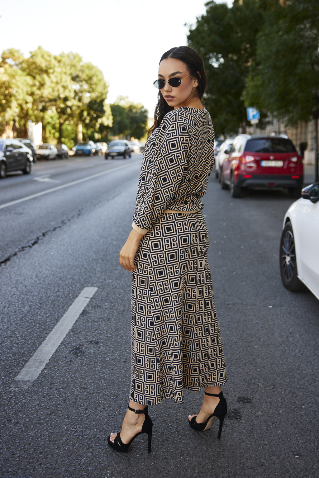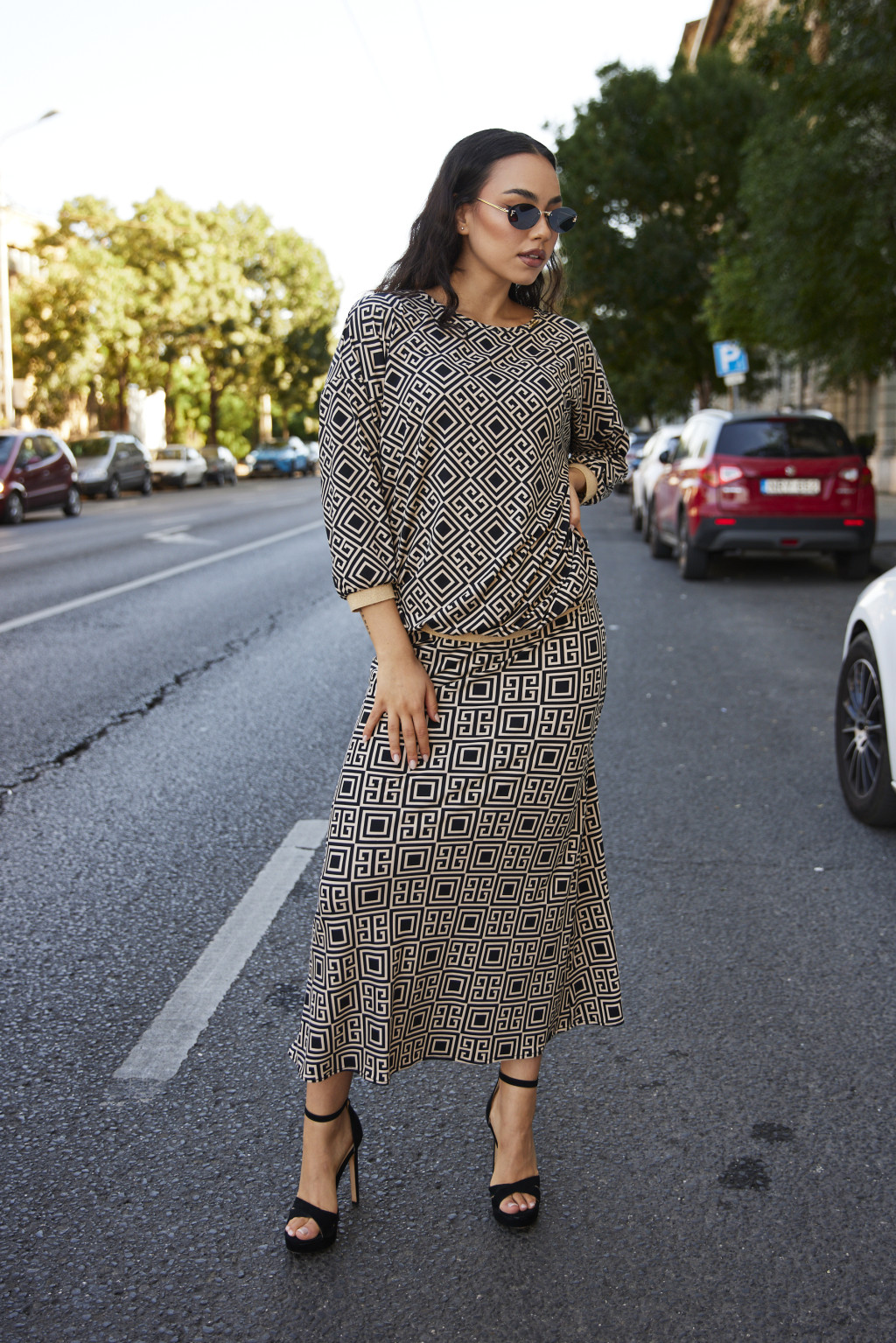 TERAMO női szoknya –gumis derekú midi szoknya,mintás,M,Tara X Viktori,Young&Free Kollekció