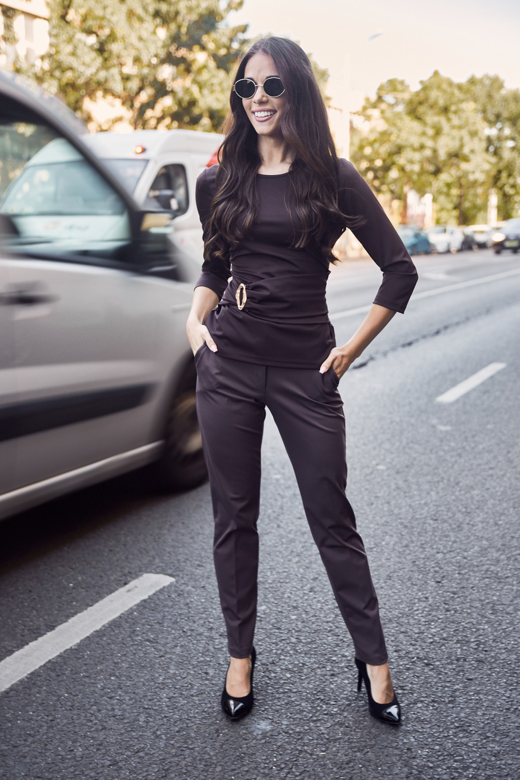 Michelle női csavart derekú, csattal díszített elegáns felső,barna,L,Tara X Viktori,Young&Free Kollekció
