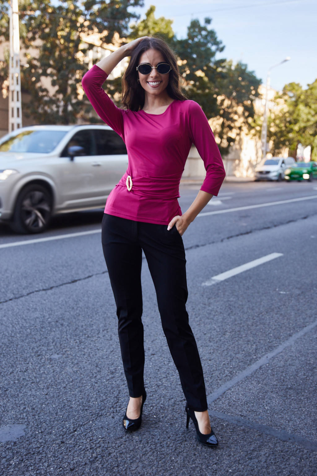 Michelle női csavart derekú, csattal díszített elegáns felső,magenta,XL,Tara X Viktori,Young&Free Kollekció