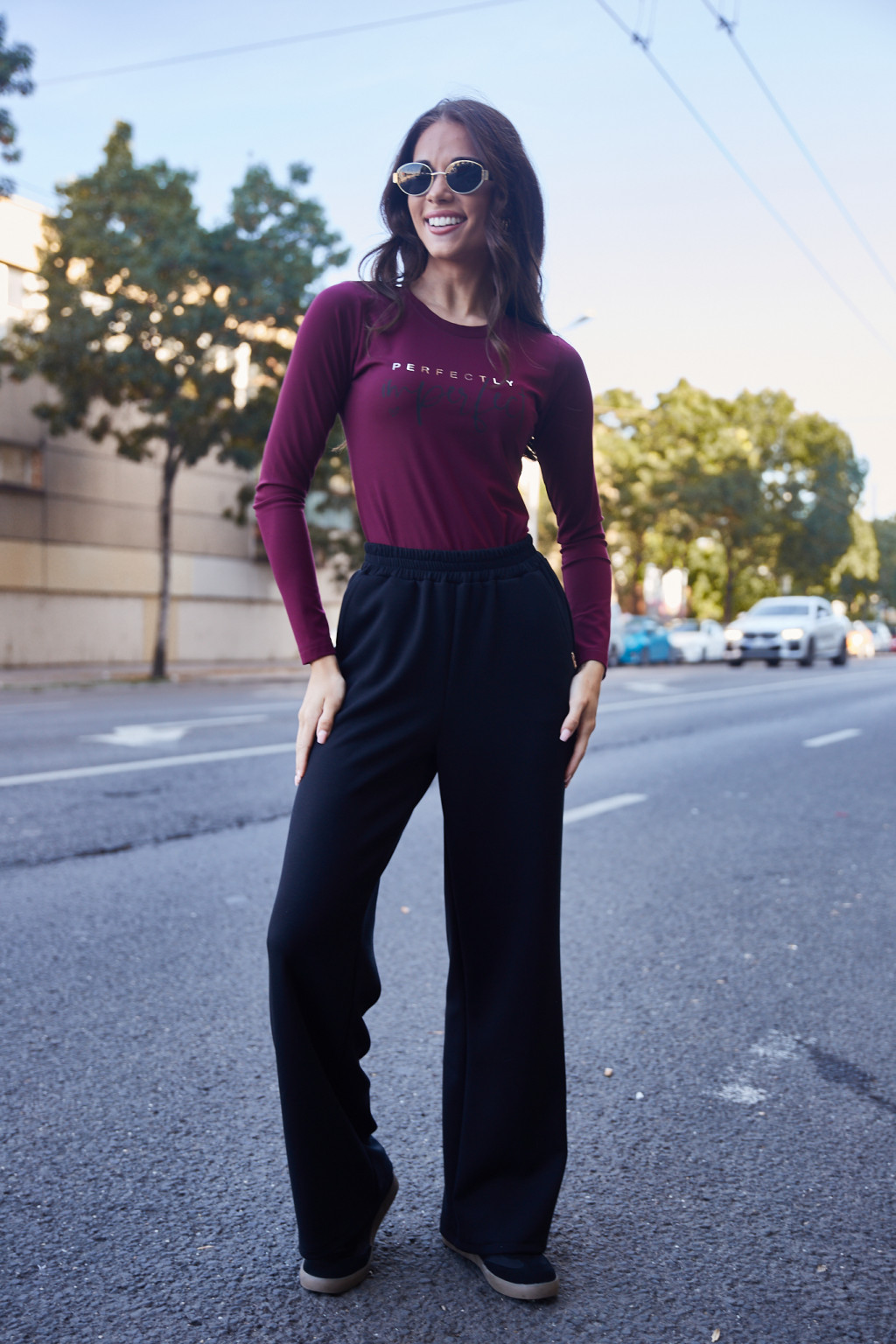 HAYLEY női hosszú ujjú póló –feliratos,bordó,M,Tara X Viktori,YOUNG&FREE Kollekció