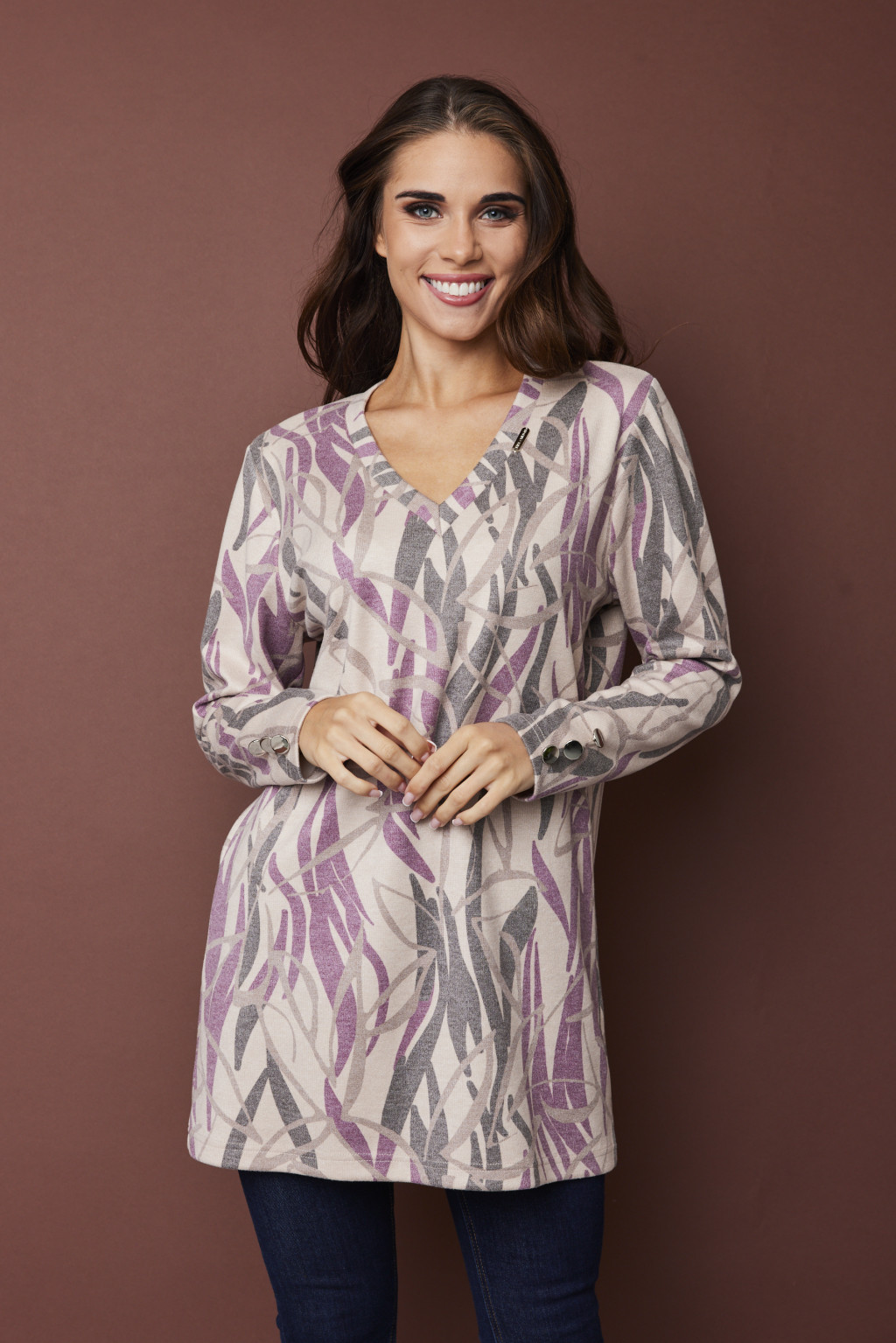 AVIANA V-nyakú kötött női pulóver gombos ujjal,mintás,S-M,Tara X Viktori,Young&Free Kollekció