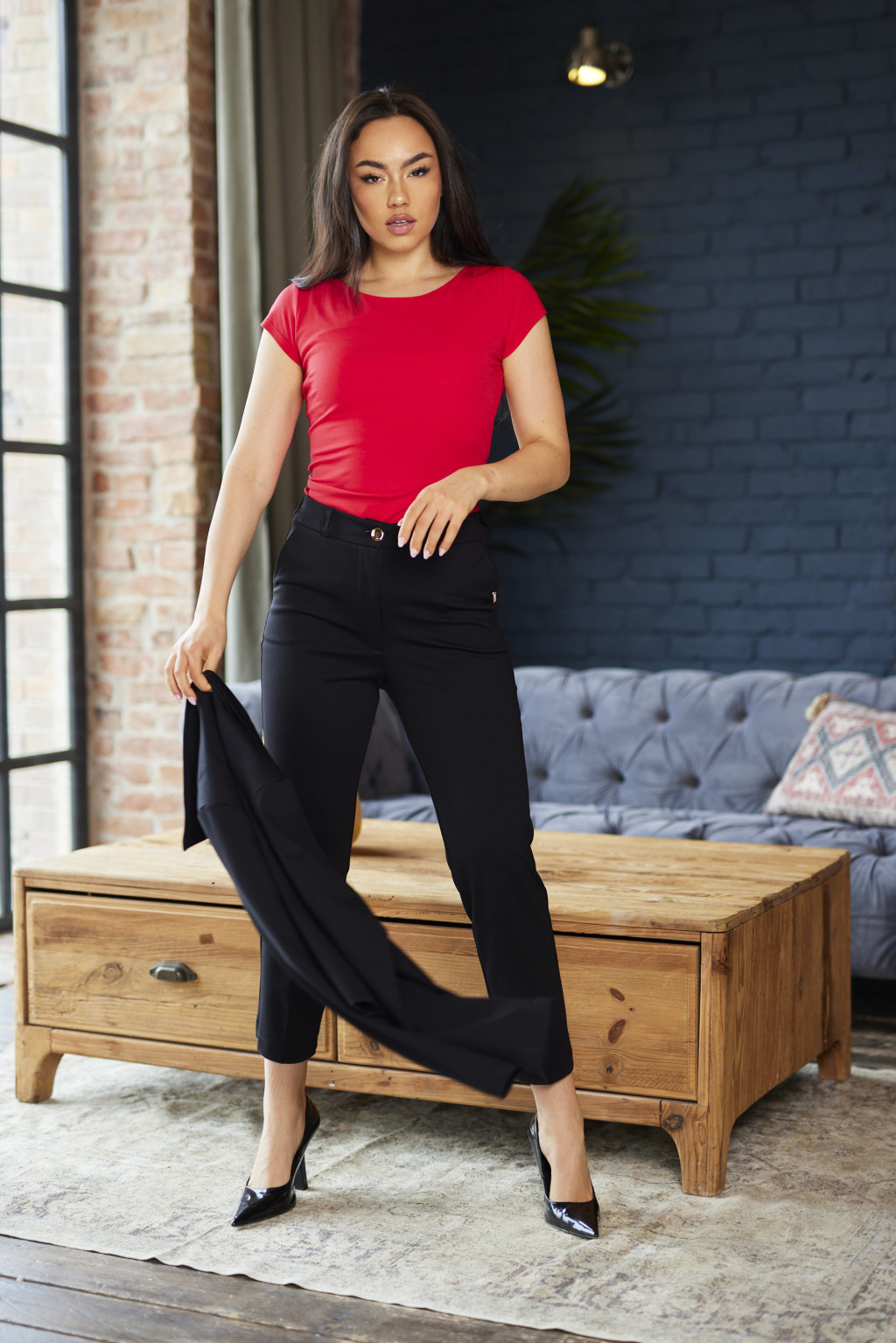 Celine női póló, kerek nyakú testhezálló női felső,piros,S,Tara x Viktori, Young & Free Kollekció