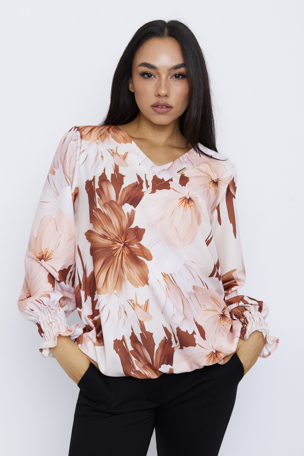 Pomona mintás női blúz V-nyakkivágással és gumírozott ujjakkal,mintás,S-M,Tara Collection X Viktori