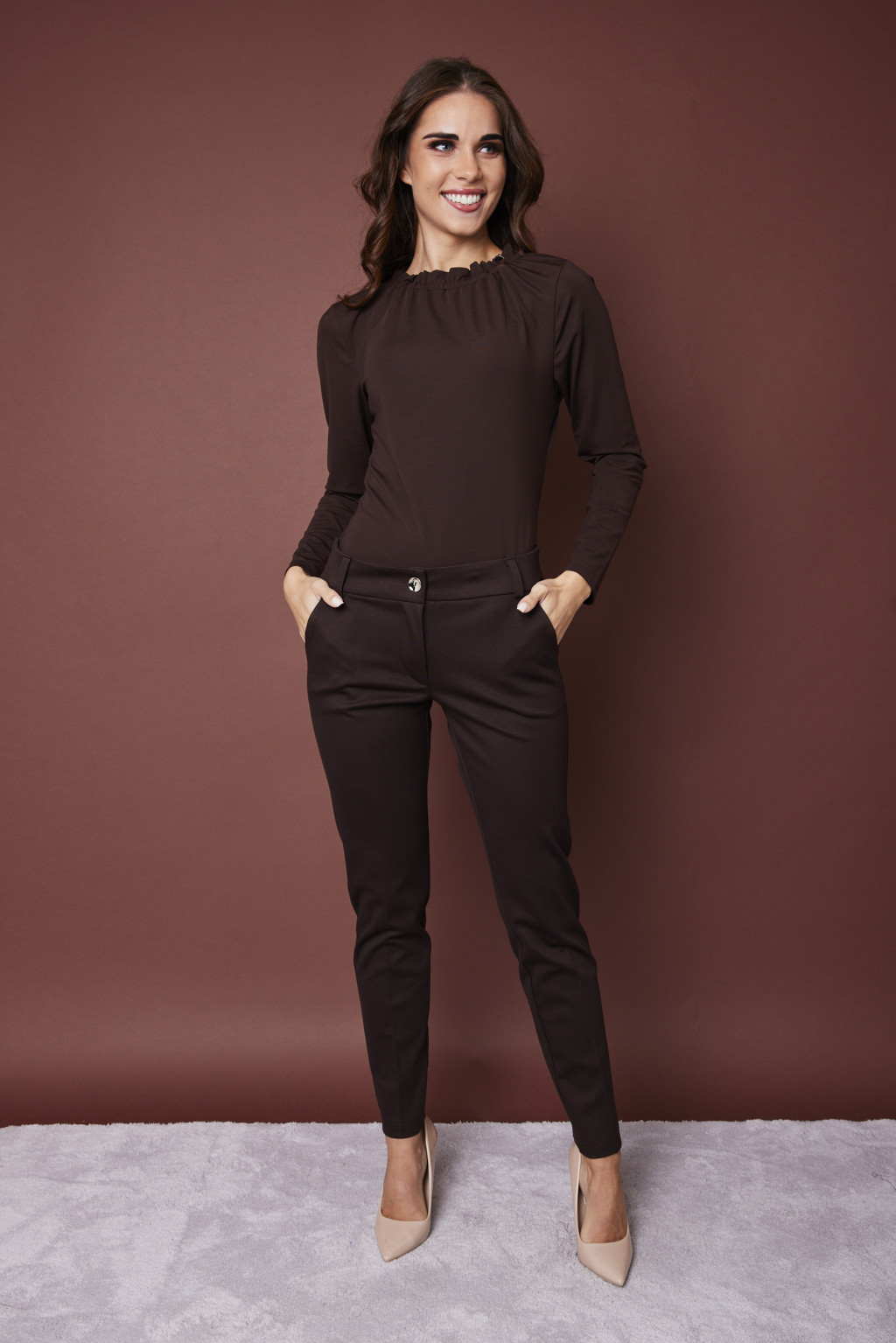 BONA-női-póló-gumis-nyakú-poliamid-felső,barna,XL,Tara X Viktori