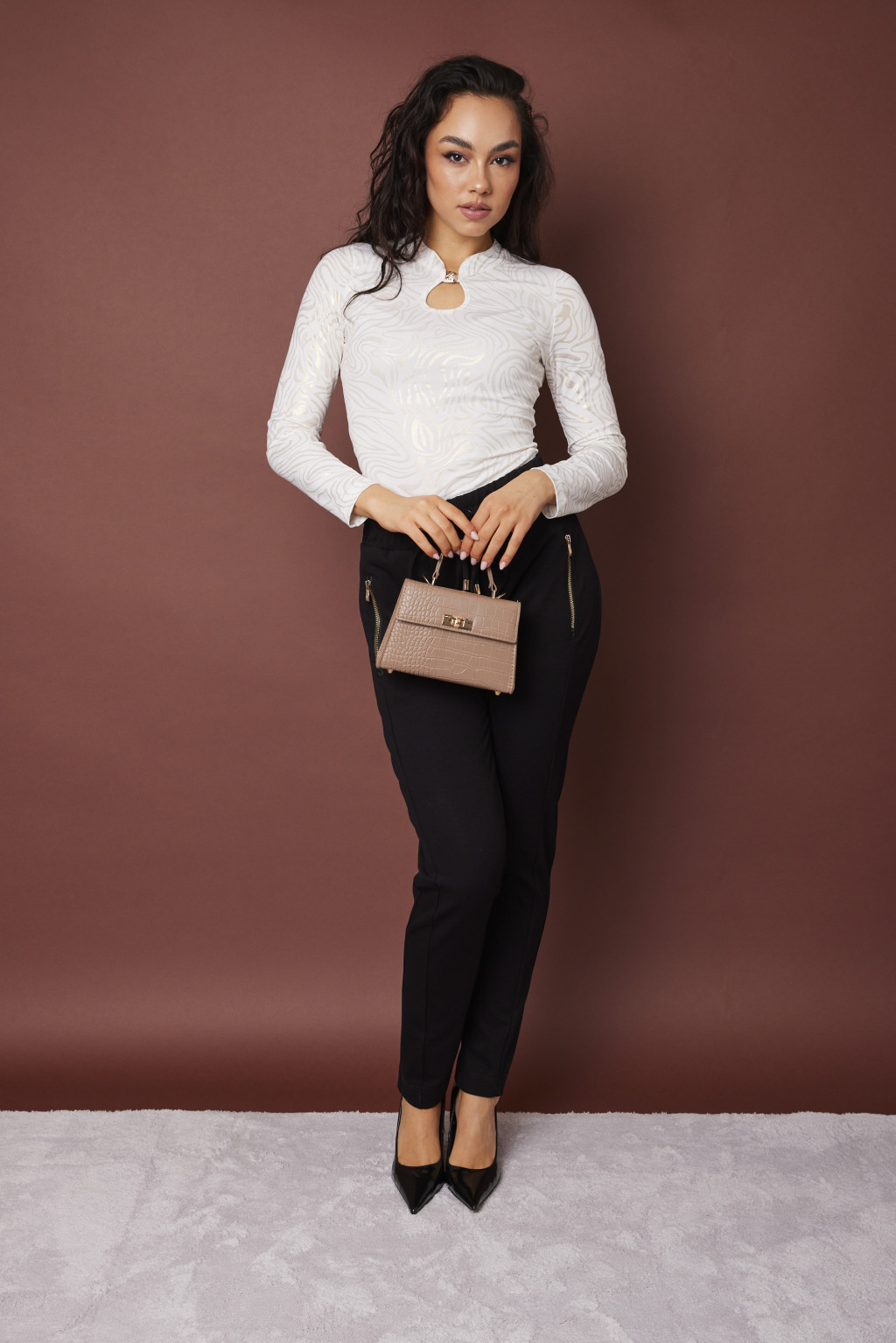 ISA sportos női nadrág cipzáras zsebekkel és széles passzés szárral,fekete,M,Tara X Viktori