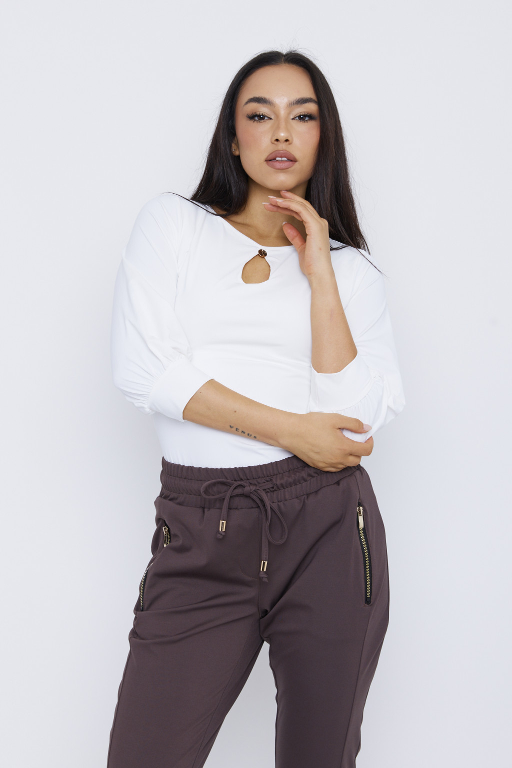 ADDISON női póló – csepp kivágásos, puffos ujjú,fehér,S,Tara X Viktori