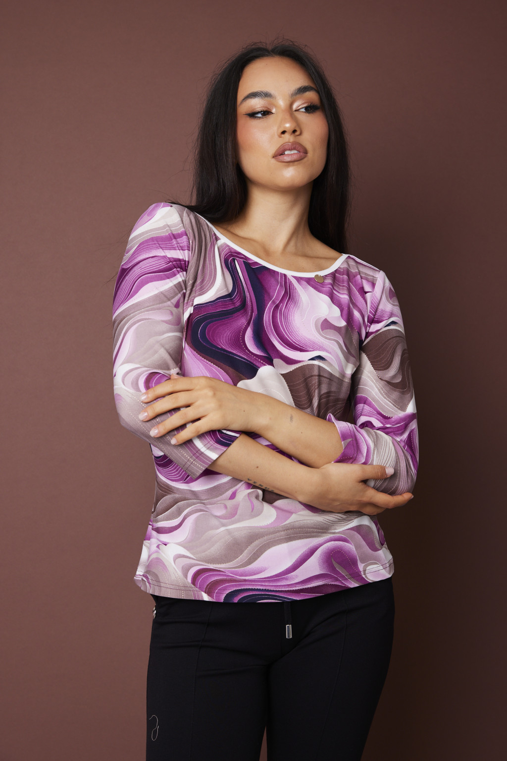SPRING női póló – csónaknyakú póló, egyszínű pánttal,mintás,S,Tara X Viktori