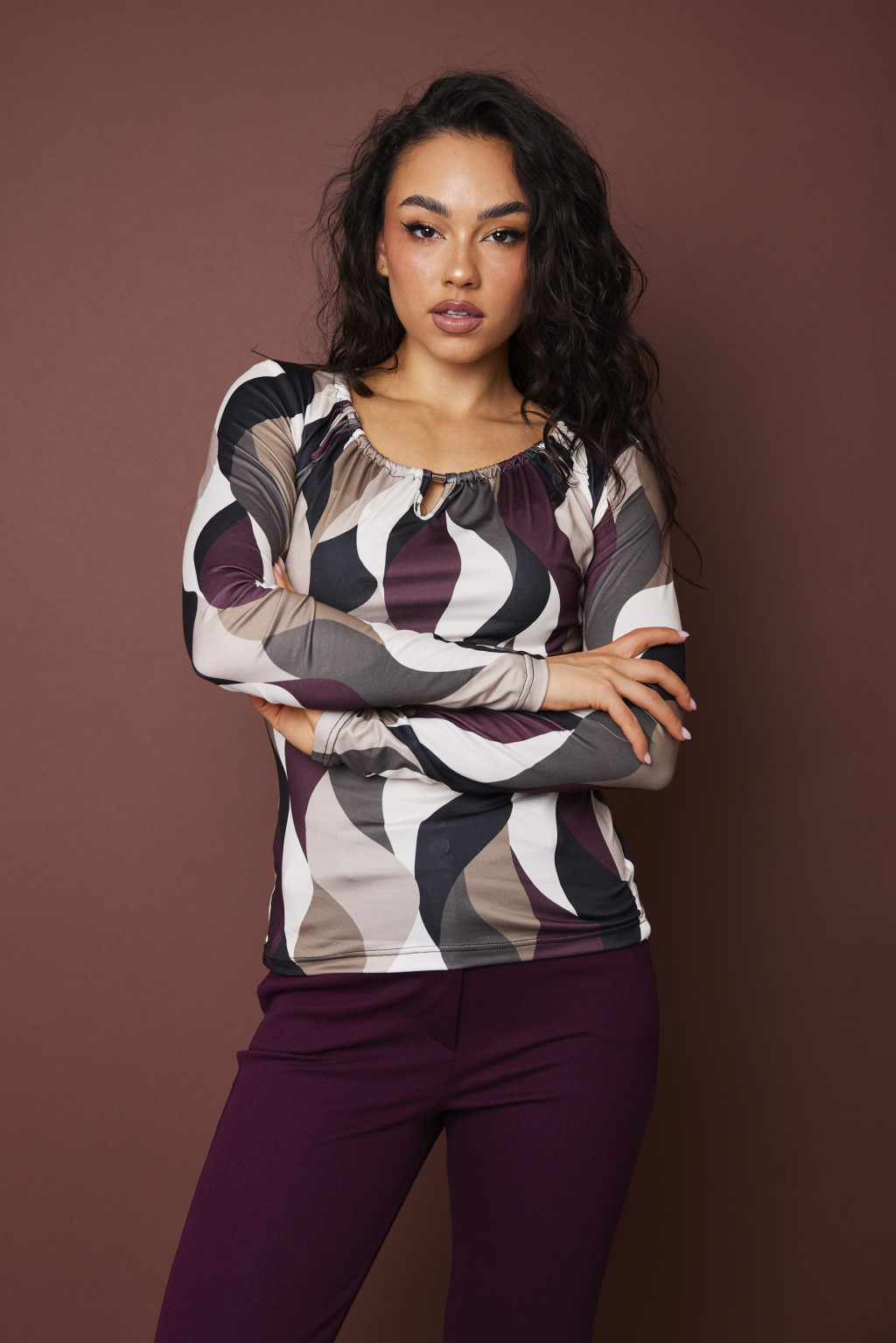 BOGYÓS női póló, kerek nyakú női felső bogyókkal és kivágással,mintás,M,Tara X Viktori