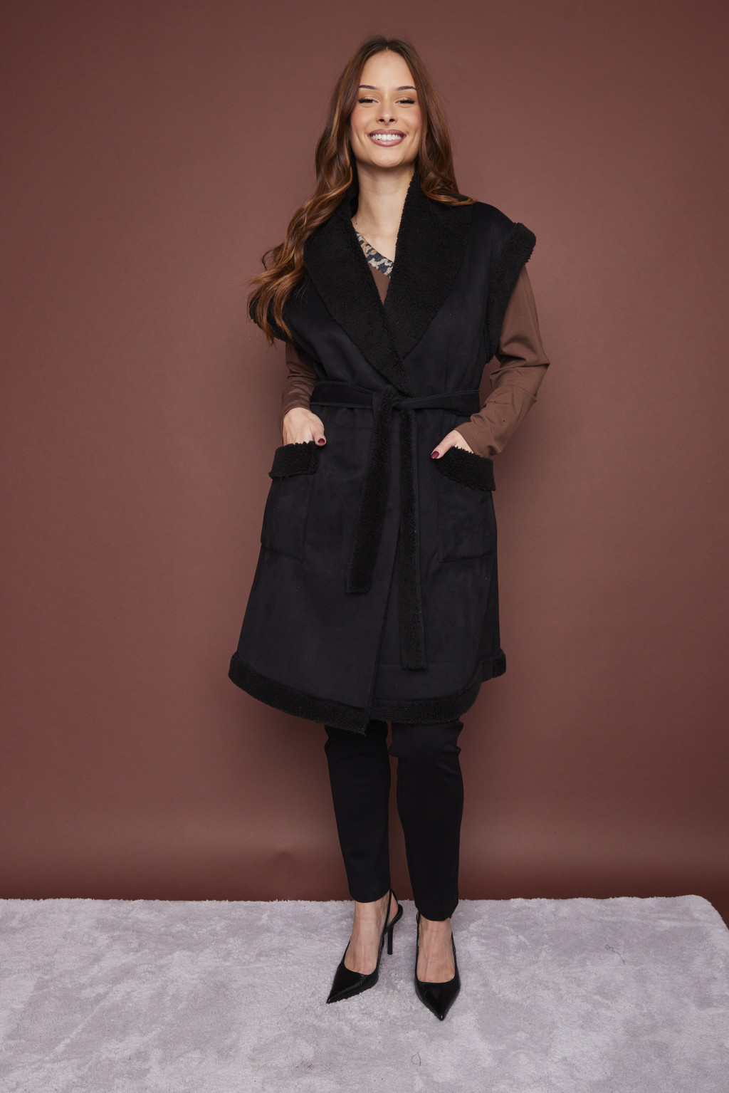 TAMARA hosszú mellény övvel,fekete,M,Tara X Viktori