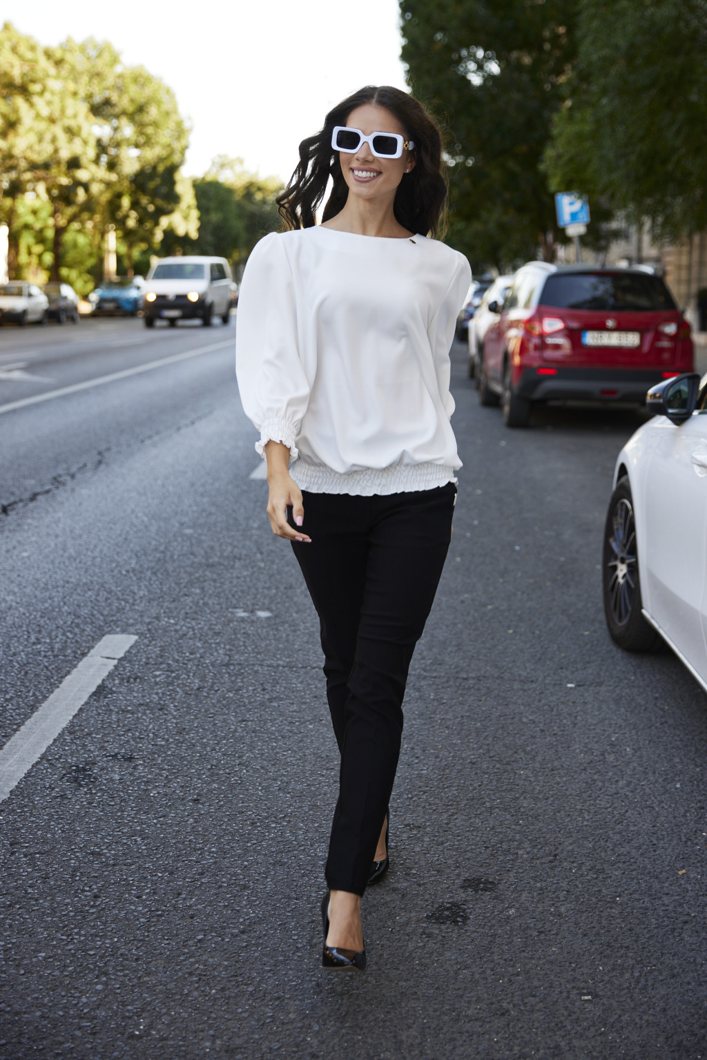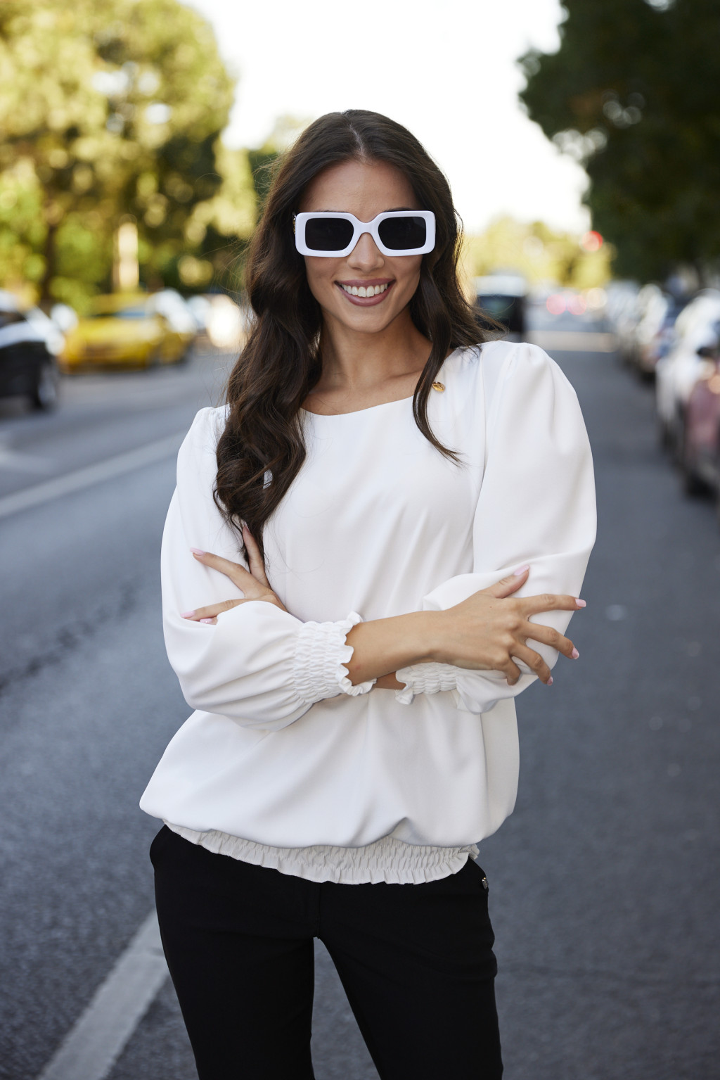 RÓZA női blúz – cérnagumis ujjú és aljú, csónaknyakú blúz,ekrü,S,TaraxViktori
