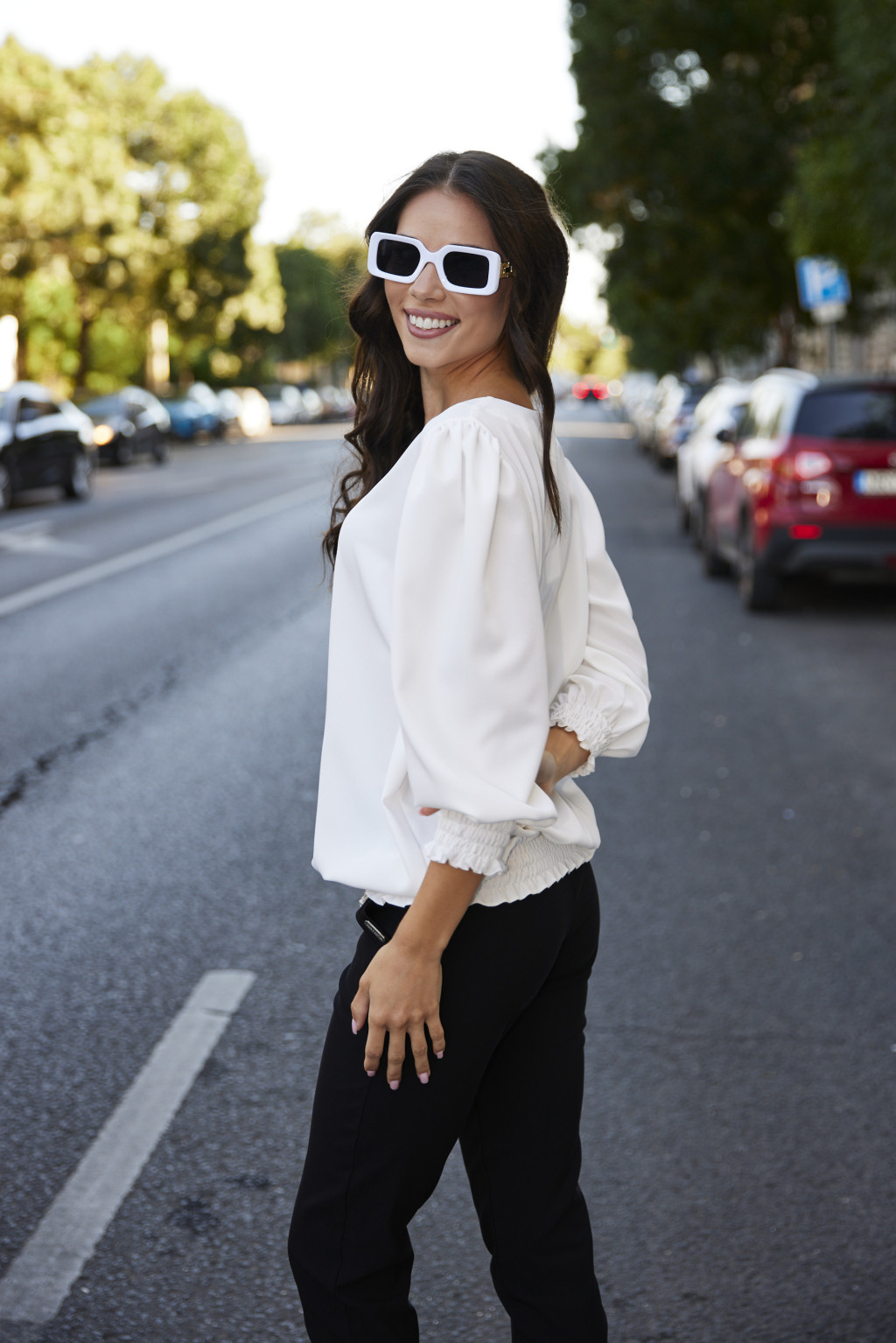 RÓZA női blúz – cérnagumis ujjú és aljú, csónaknyakú blúz,ekrü,M,TaraxViktori