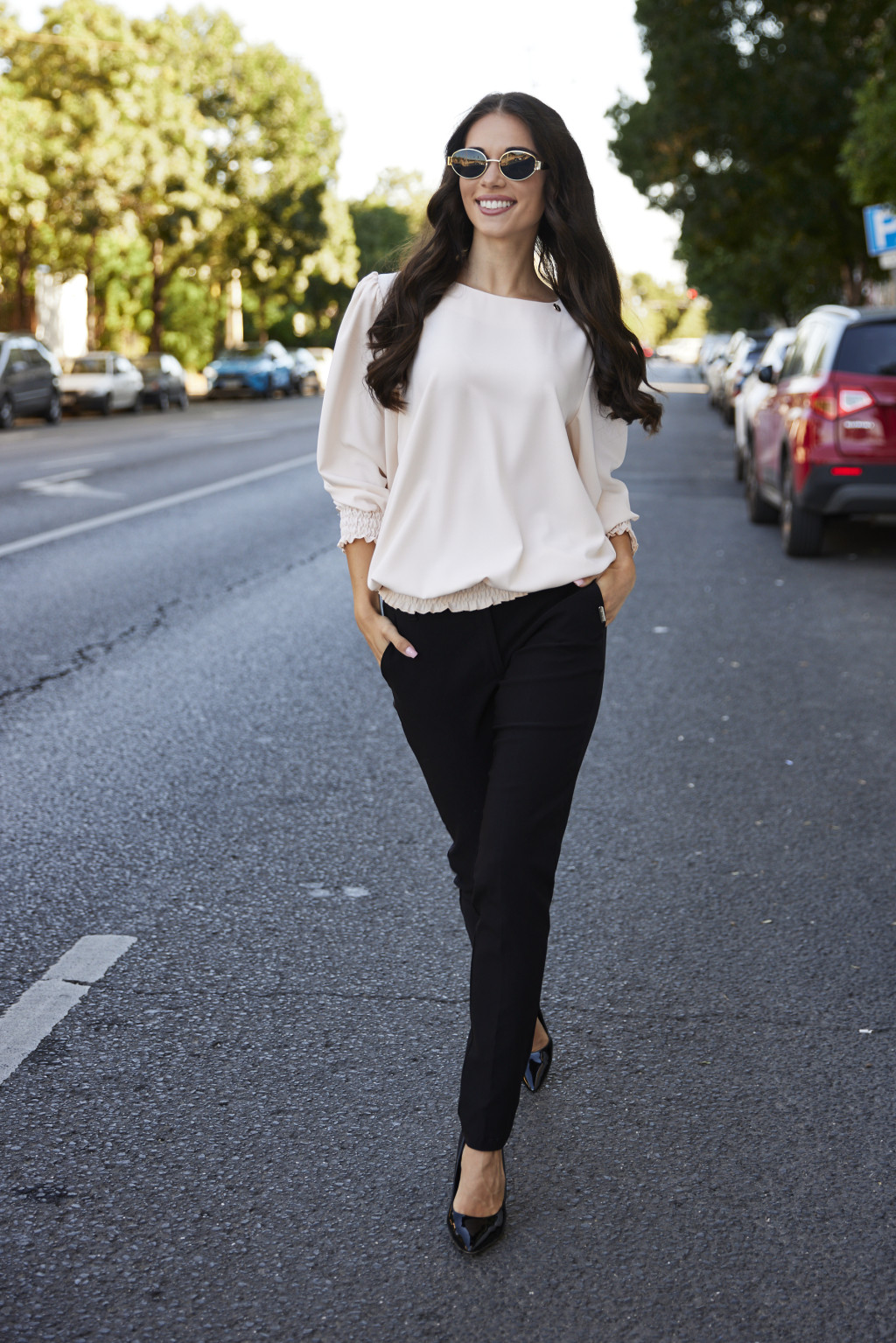 RÓZA női blúz – cérnagumis ujjú és aljú, csónaknyakú blúz,bézs,L,TaraxViktori