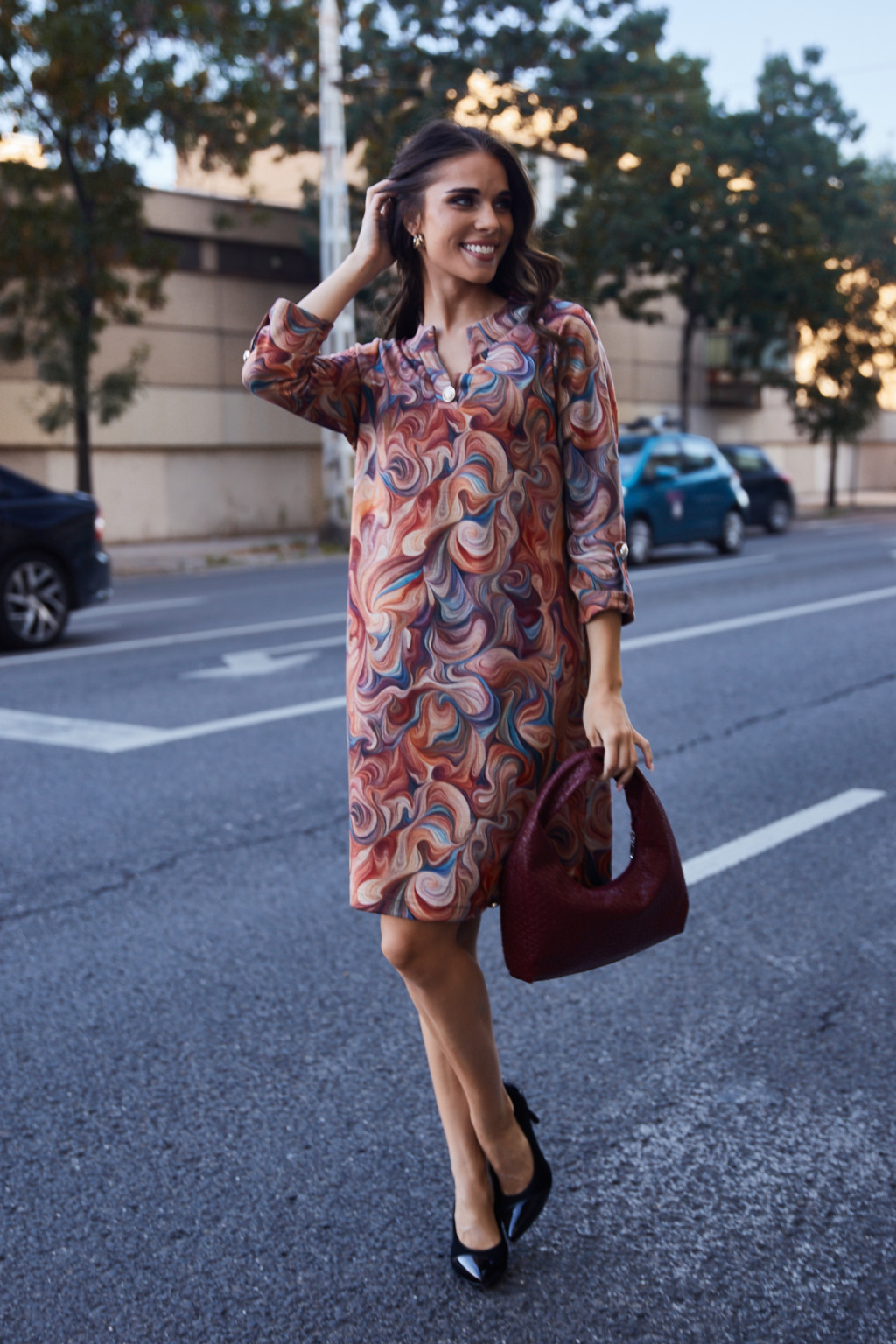 Ludmilla női tunika ruha, V-nyakú és V-aljú bővebb fazon,mintás,XL, Tara x Viktori