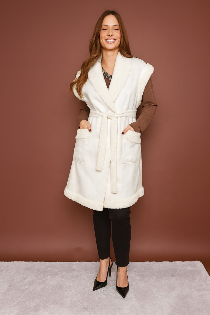 TAMARA hosszú mellény övvel,ekrü,M,Tara X Viktori