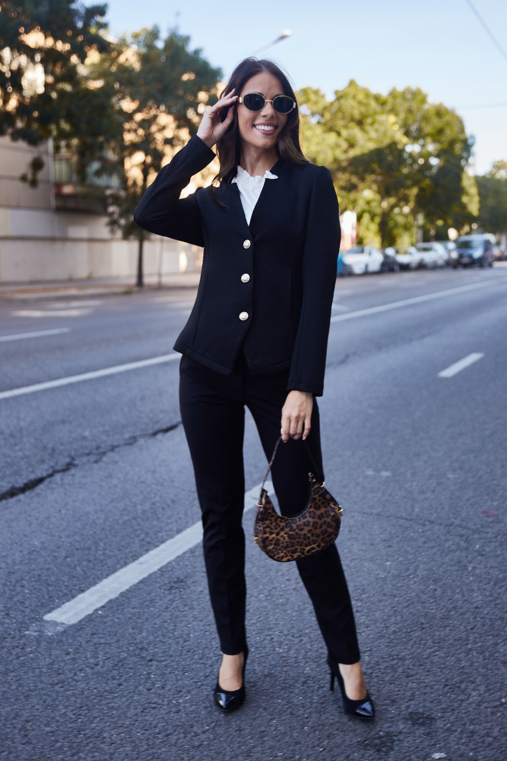 MIA női álló galléros blézer – elegáns,gombos,fekete,M,Tara X Viktori