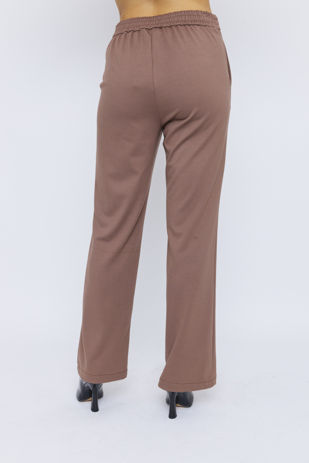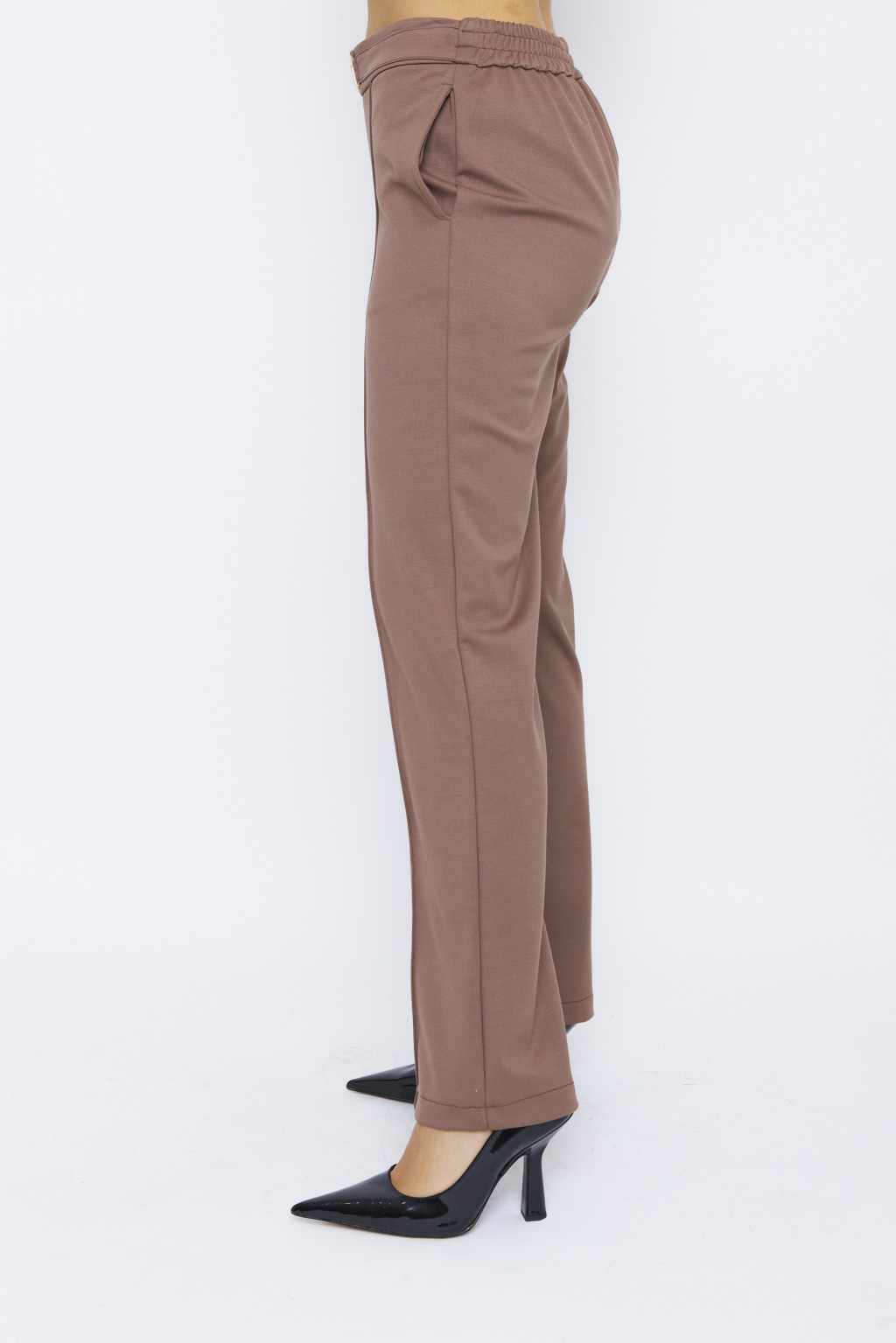 PEARL női elegáns nadrág tűzött éllel és arany díszcsattal – kényelmes gumis derekú nadrág,barna,M,Tara X Viktori