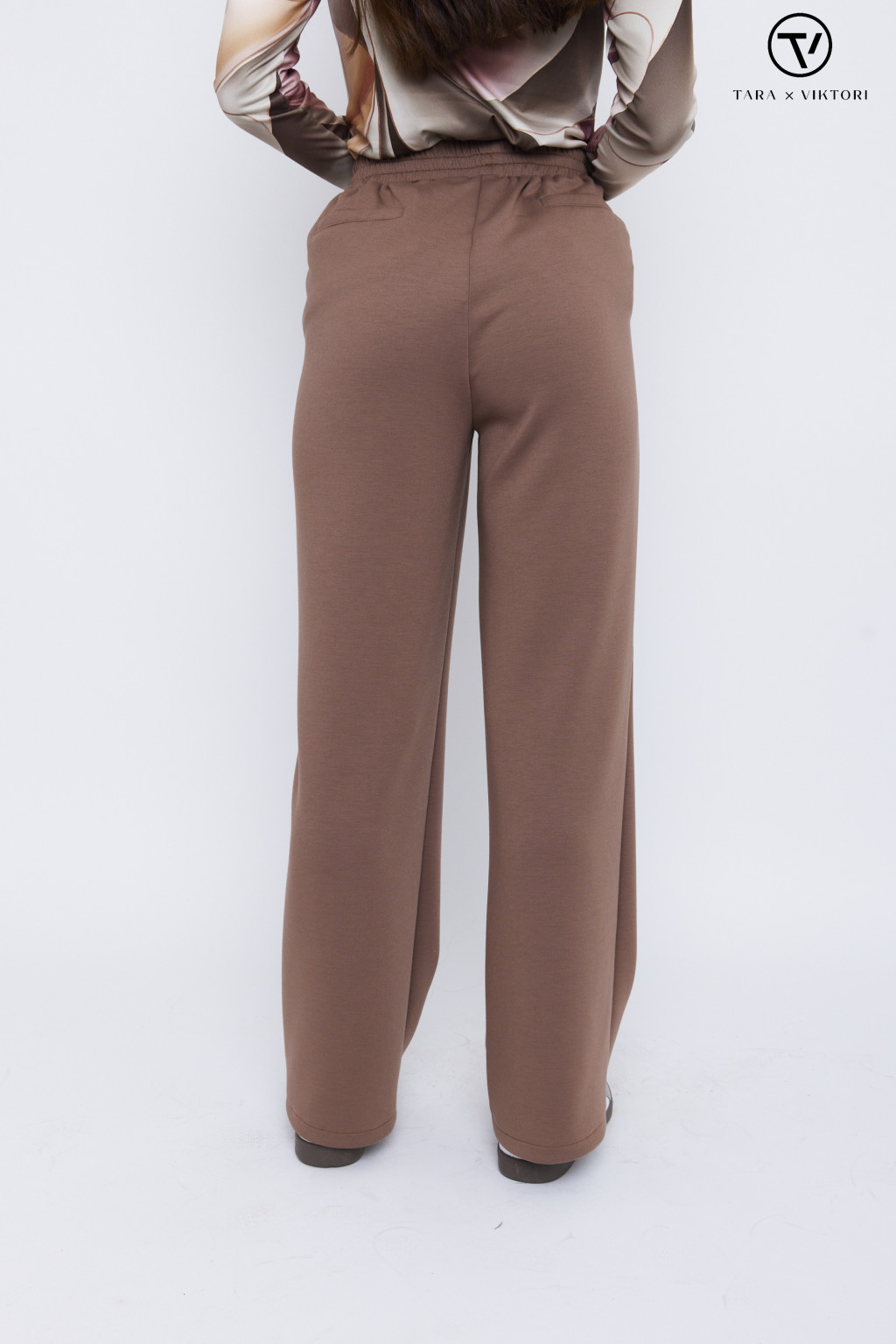 TAORMINA női nadrág – Gumis derekú, bő szárú nadrág svédzsebbel,barna,XL,Tara X Viktori