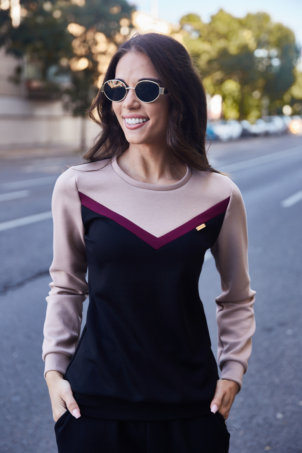 Az IMOLA női tunika a sportosan elegáns stílus tökéletes megtestesítője. A klasszikus kerek nyakkivágás és a V-alakban elhelyezkedő színblokkok karcsúsító hatást kölcsönöznek a felsőnek. A kontrasztos színkombináció modern megjelenést biztosít, míg a rugalmas, kellemes tapintású anyag egész napos komfortérzetet nyújt. A hosszú ujjú fazon ideális hűvösebb napokra is, akár sportos, akár lezserebb elegáns összeállításokhoz.