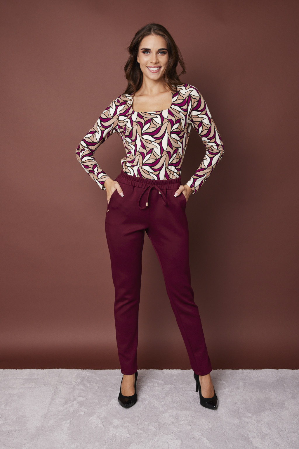 PAYTON női gumis derekú egyenes szárú nadrág,bordó,XL,Tara X Viktori
