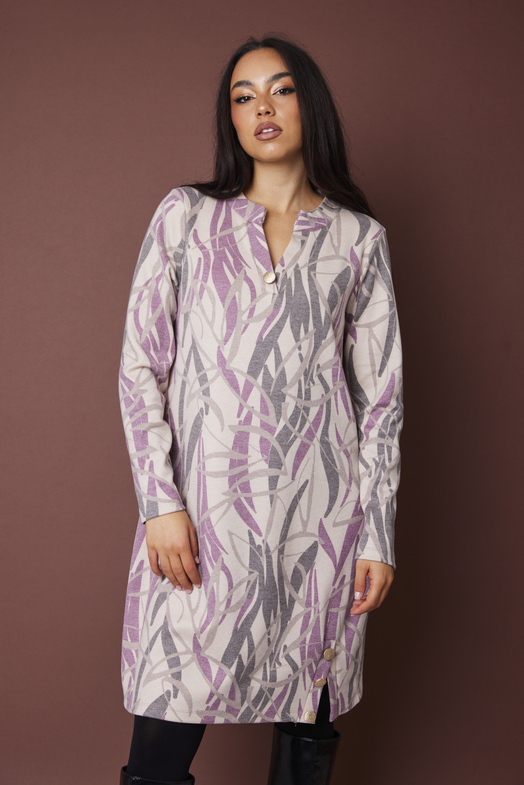 LUDMILLA női tunikaruha,kötött, V-nyakú, gombos díszítéssel,mintás,M,Tara X Viktori