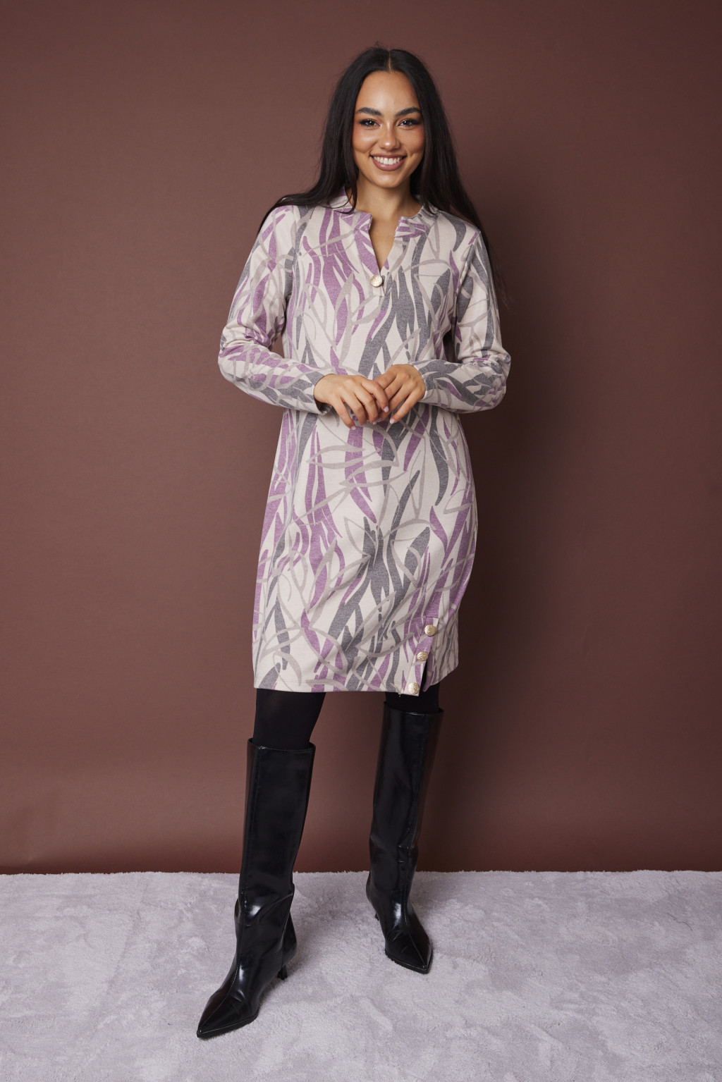 LUDMILLA női tunikaruha,kötött, V-nyakú, gombos díszítéssel,mintás,XL,Tara X Viktori