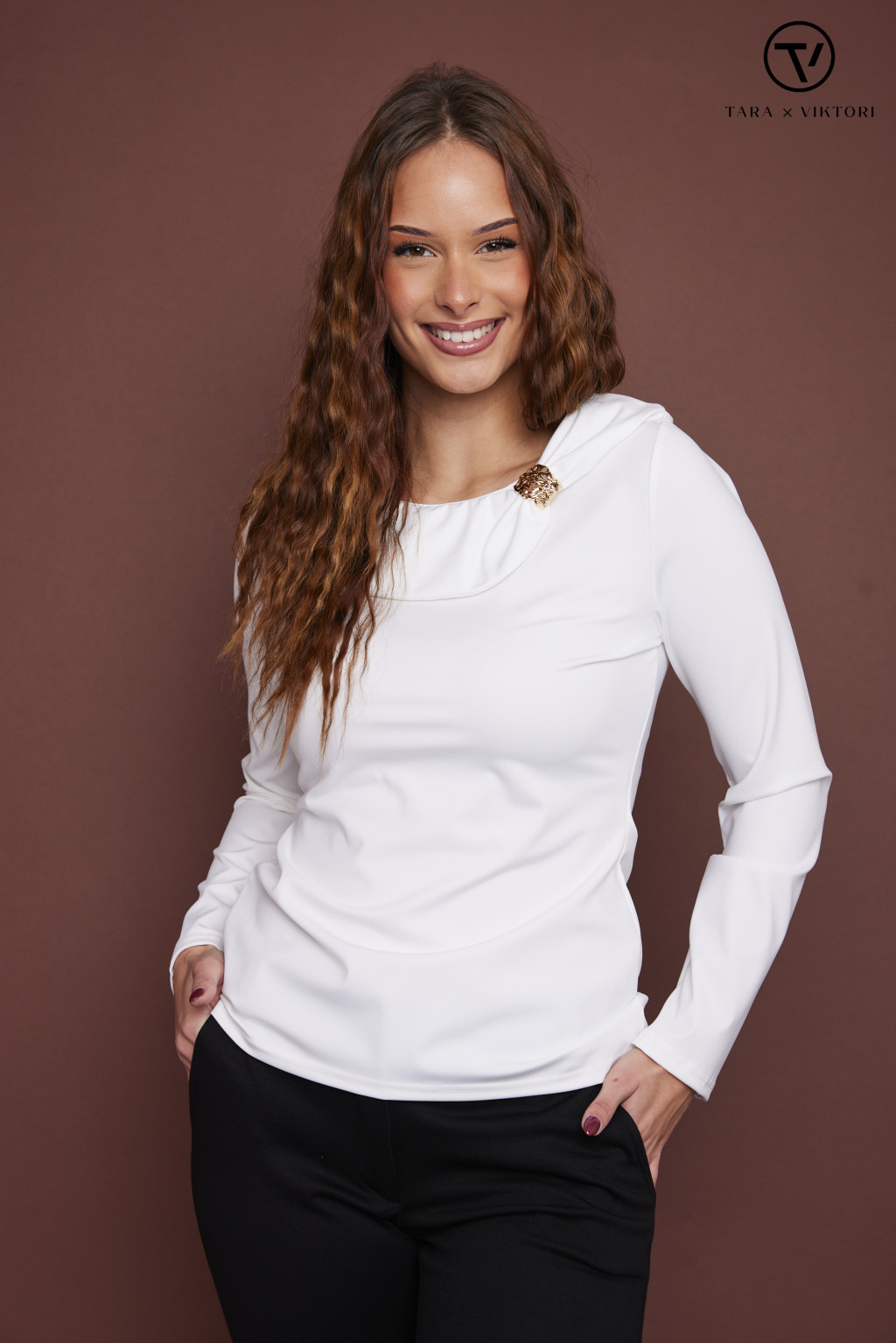 CHARLOTTA női póló –brossal díszített,fehér,XL,Tara X Viktori