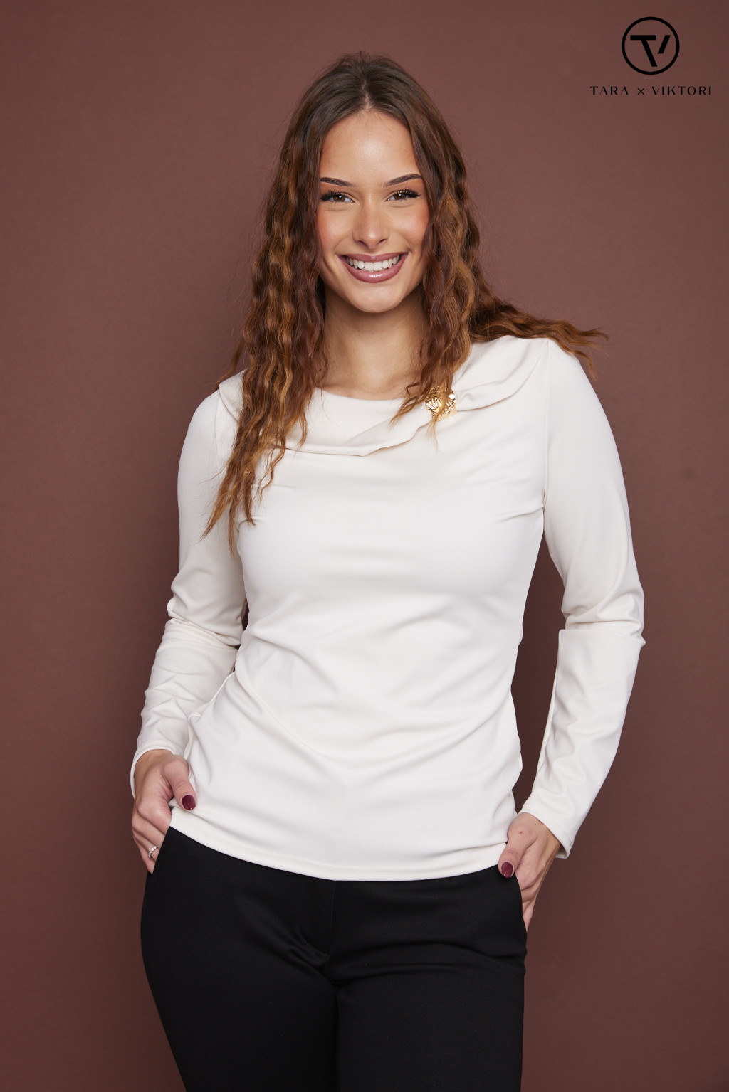 CHARLOTTA női póló –brossal díszített,bézs,S,Tara X Viktori