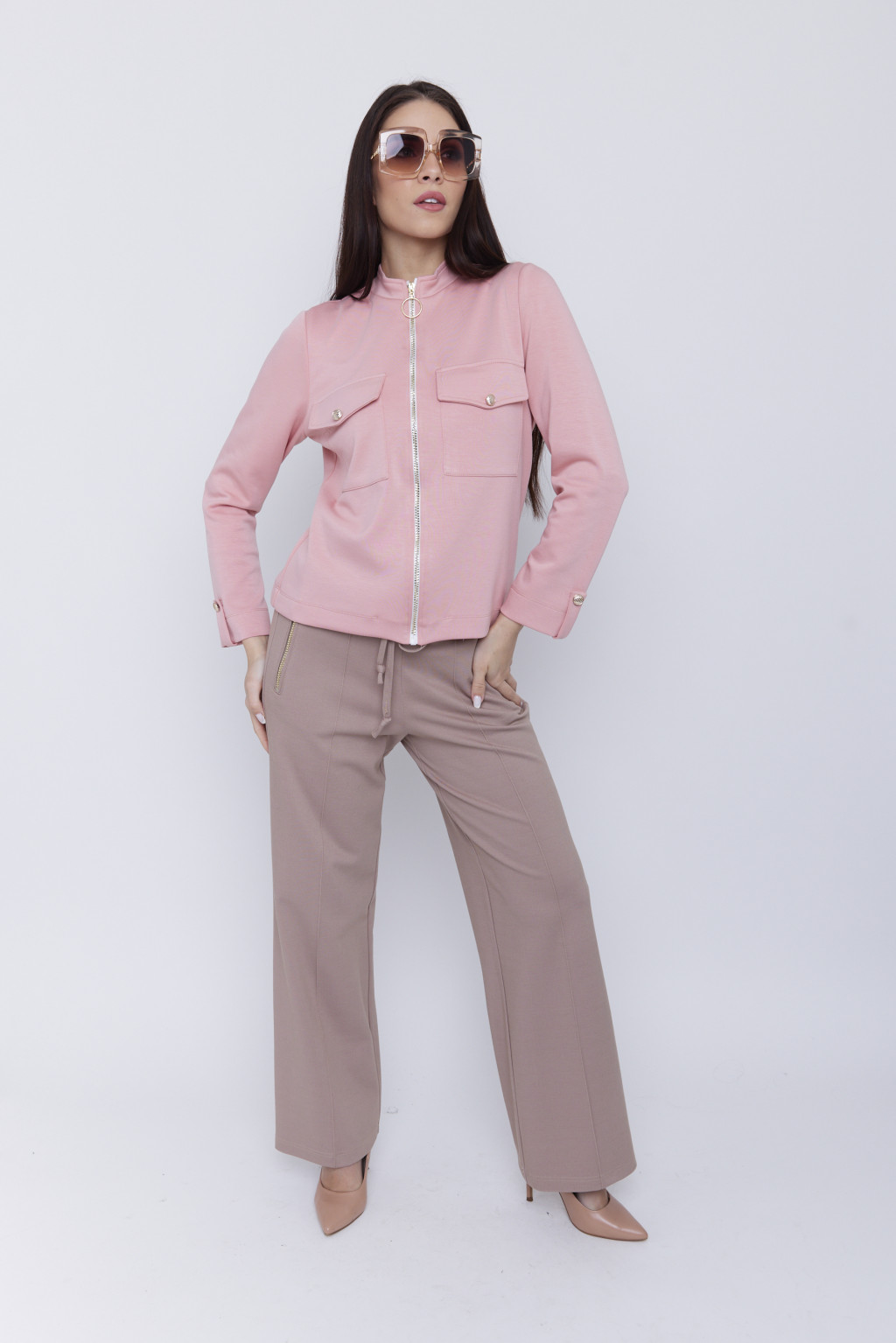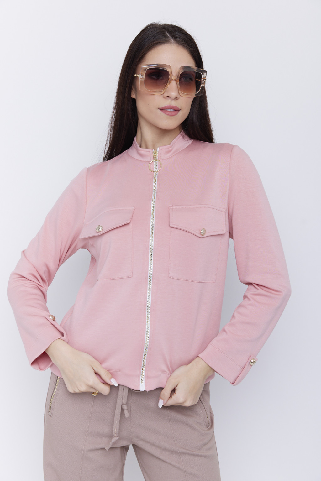 LUCINA női zakó – cipzáras, zsebes, klapnis ujjú fazon,XL, rózsaszín,Tara X Viktori