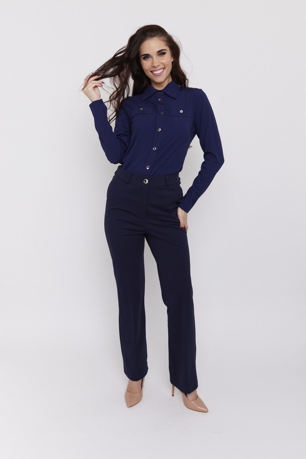 ANNEMARIE női blúz – gombos elejű, díszzsebes elegáns blúz,sötétkék,XL,Tara X Viktori