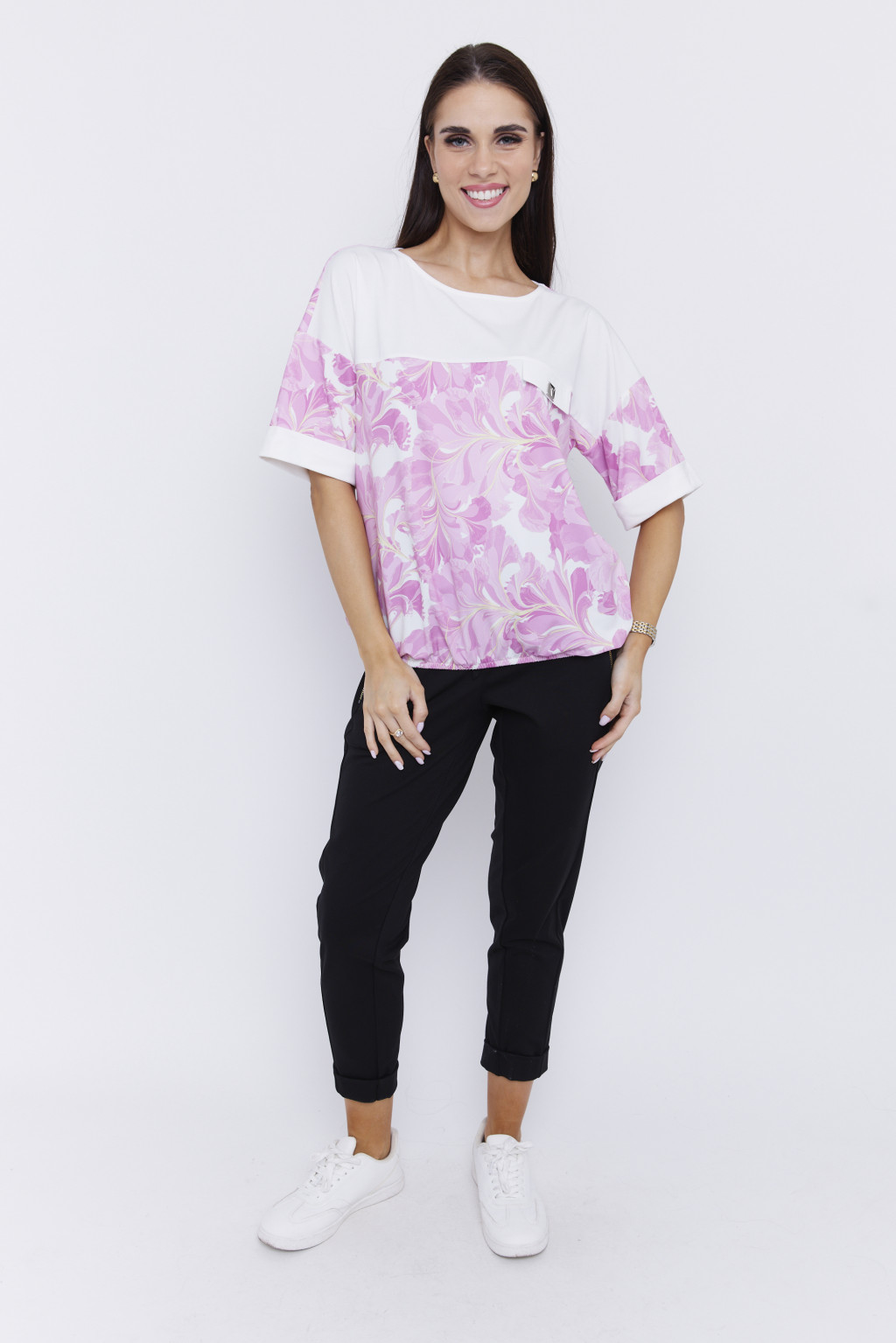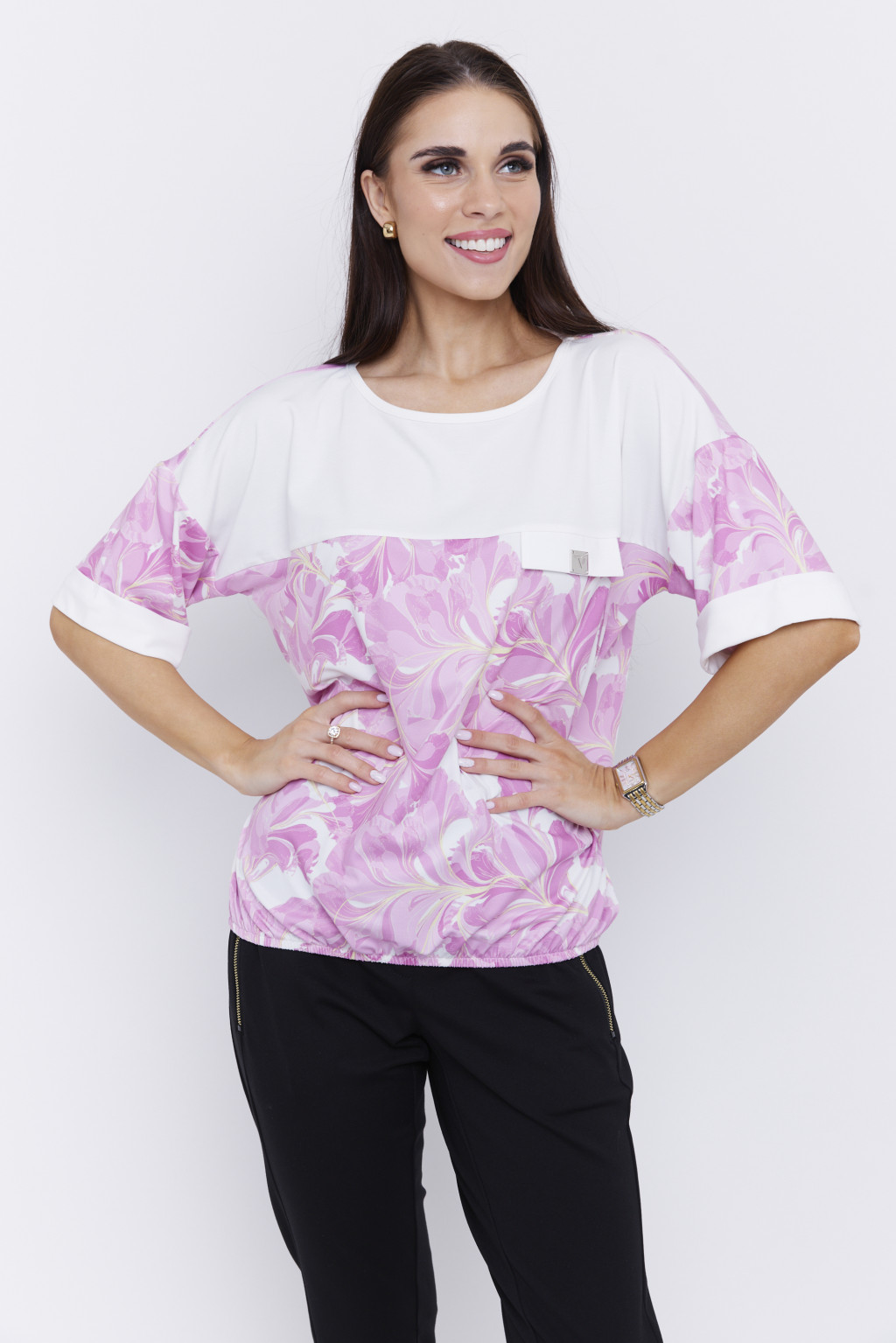 ZELENIA női felső– zseblapos, gumis aljú, bő fazonú tunika,mintás,M,Tara X Viktori