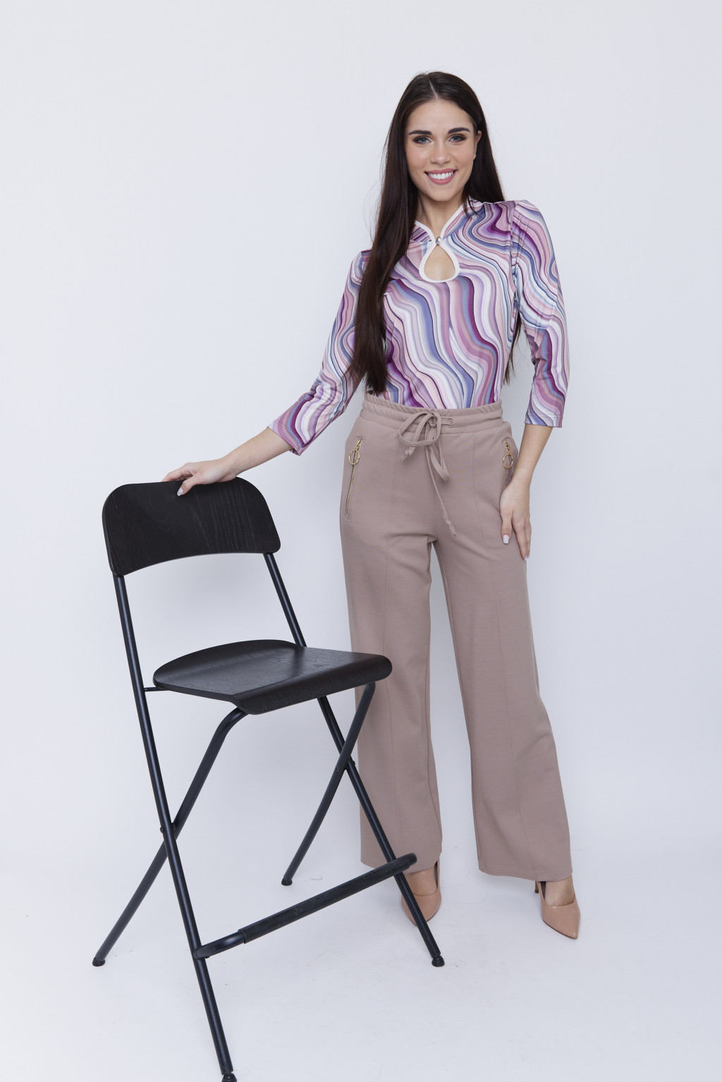 JELLY női póló – orosz galléros, csepp kivágású, gombbal díszített póló,mintás,S,Tara X Viktori
