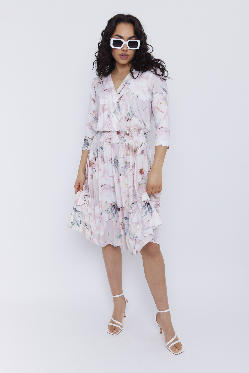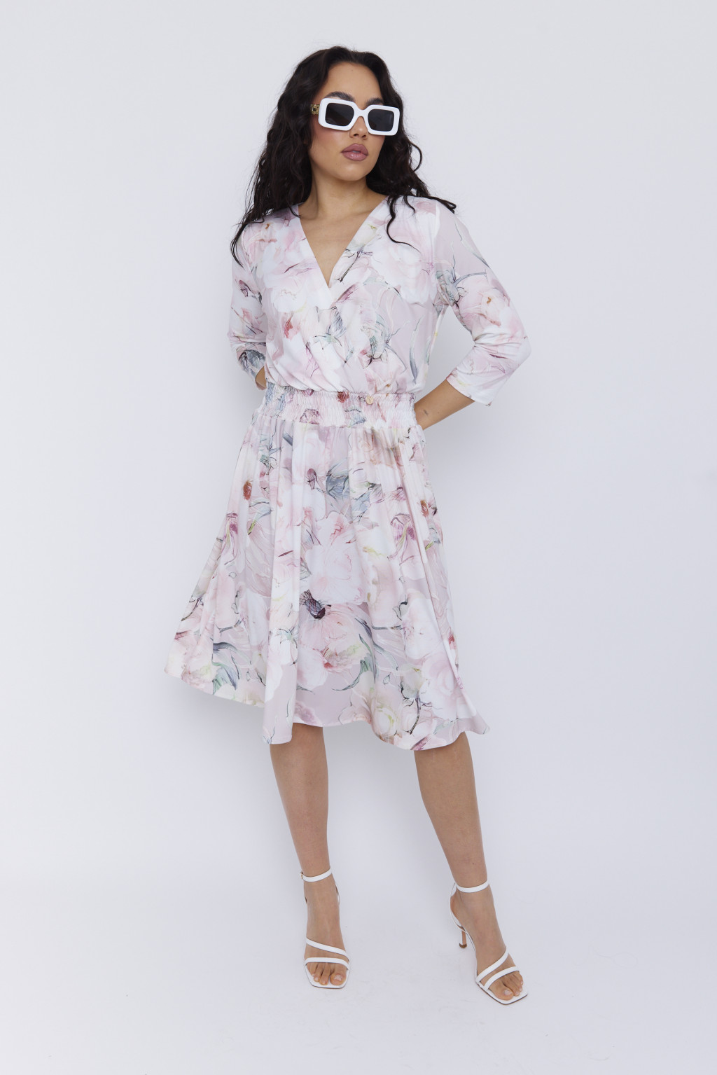 MAITREY női ruha-átlapolt, gumis derekú ruha,mintás,S,Tara X Viktori