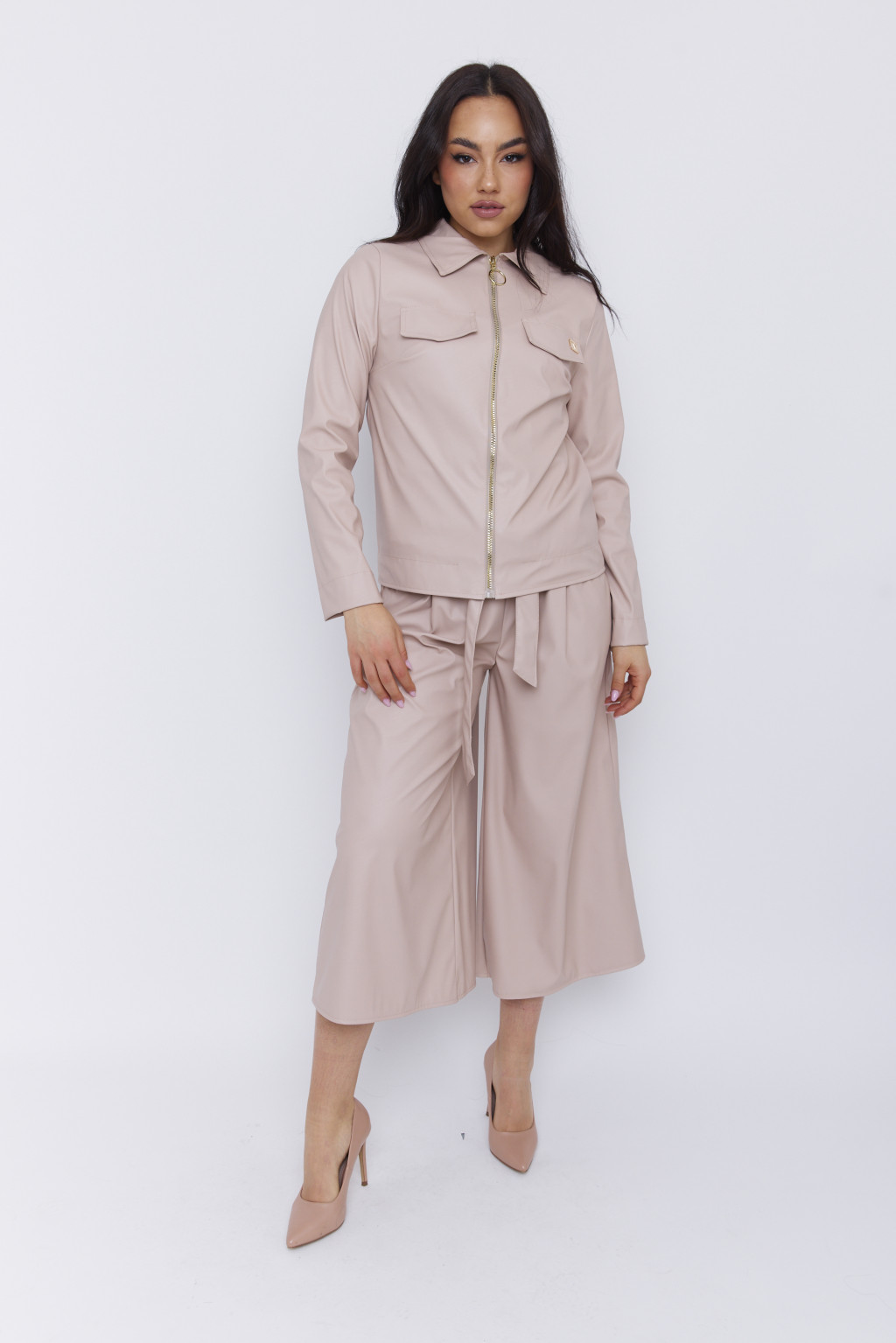 MARTINA női zakó – galléros, cipzáros, díszzsebes fazon,bézs,bőr,L,Tara X Viktori