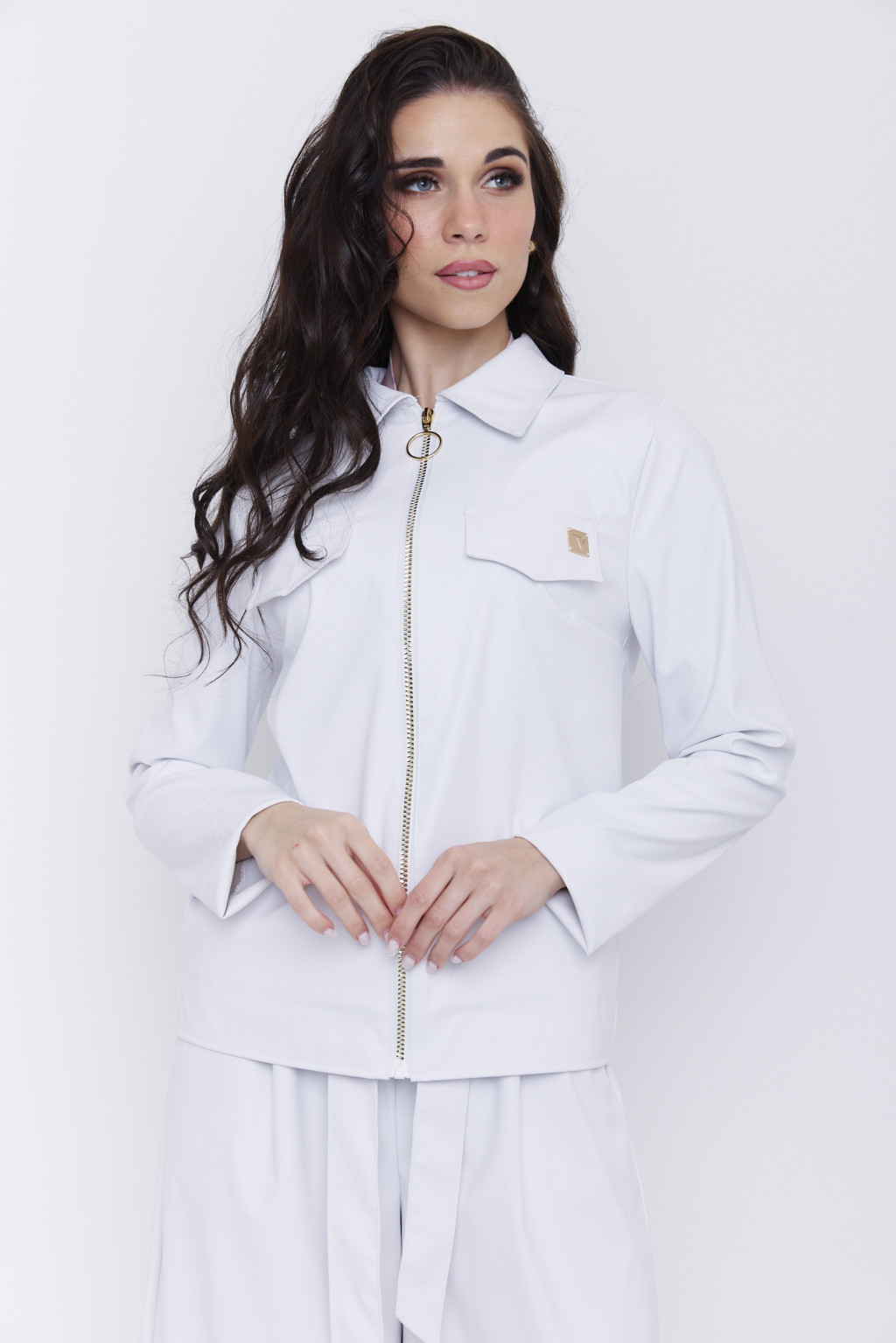 MARTINA női zakó – galléros, cipzáros, díszzsebes fazon,fehér,bőr,S,Tara X Viktori