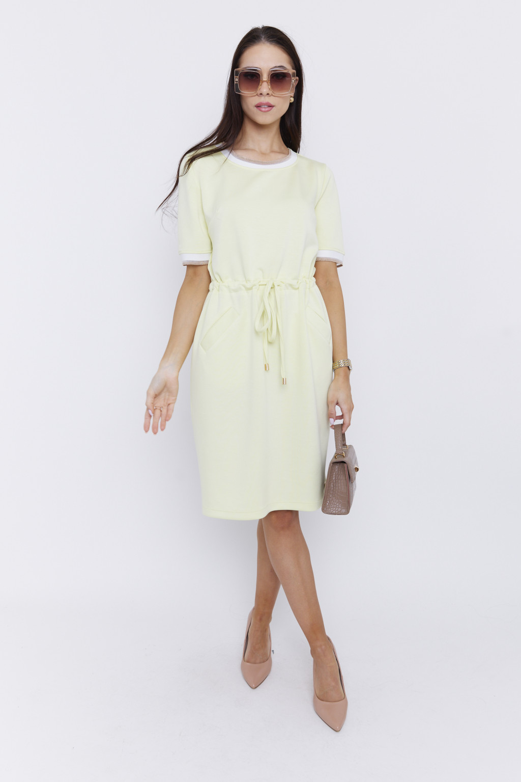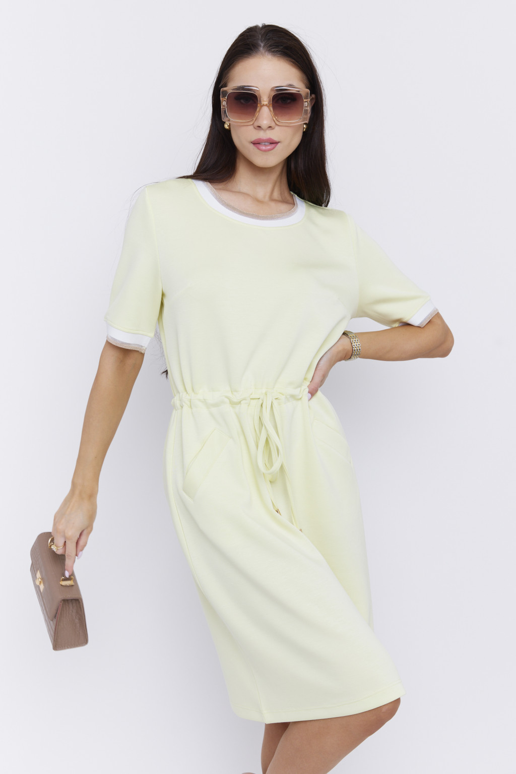 IRIS női ruha – gumis derekú, sportosan elegáns fazon,sárga,L,Tara X Viktori