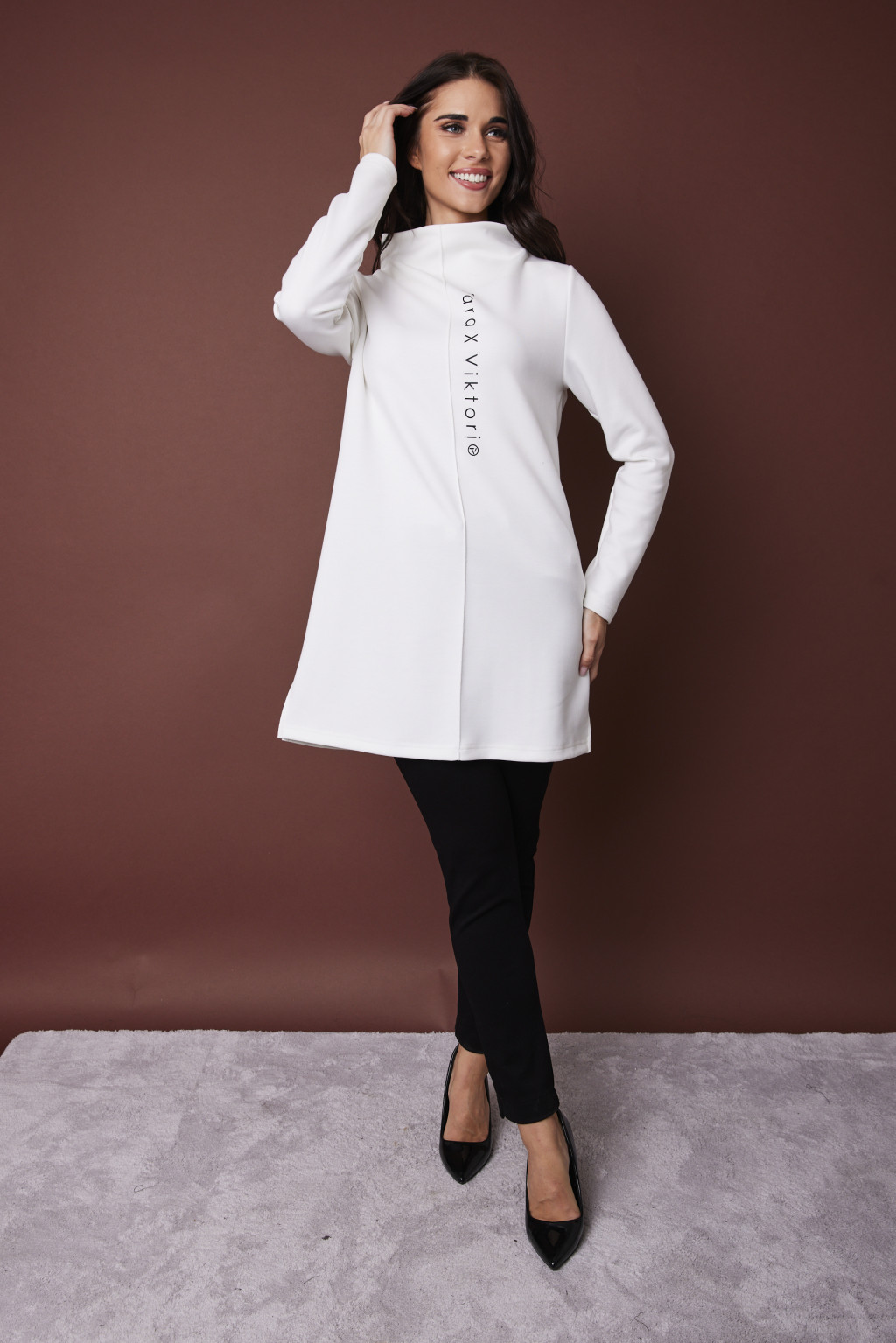 Loretta feliratos hosszú tunika,fehér,XL,Tara X Viktori