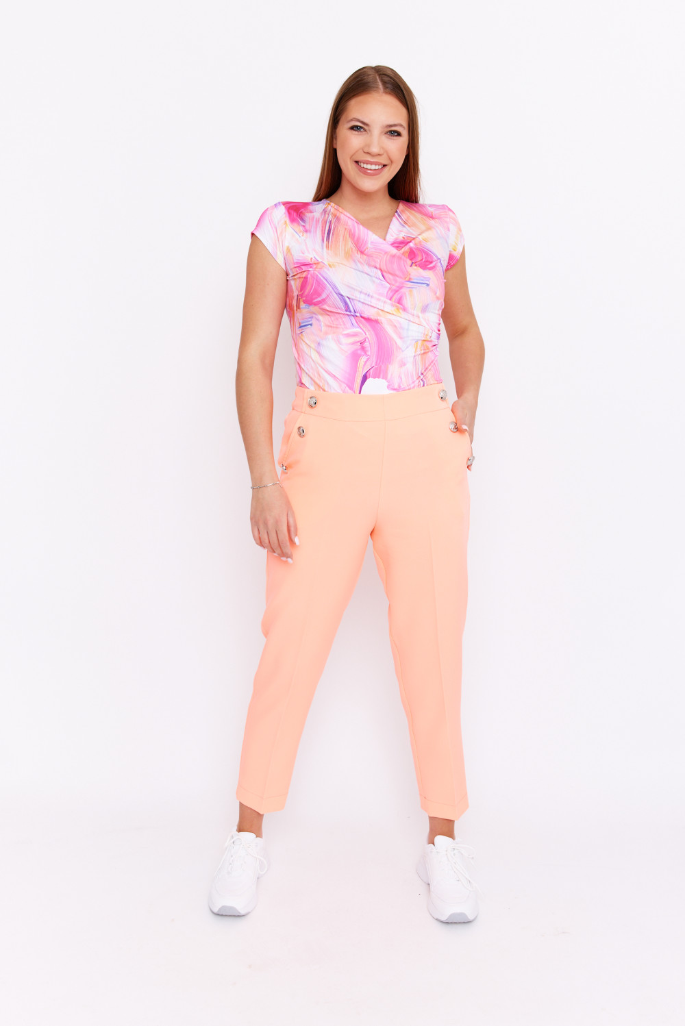 Ginevra női nadrág, egyenes szárú fazon, gombokkal és zsebekkel,intenzív narancssárga, M, Tara x Viktori, Curve Fashion