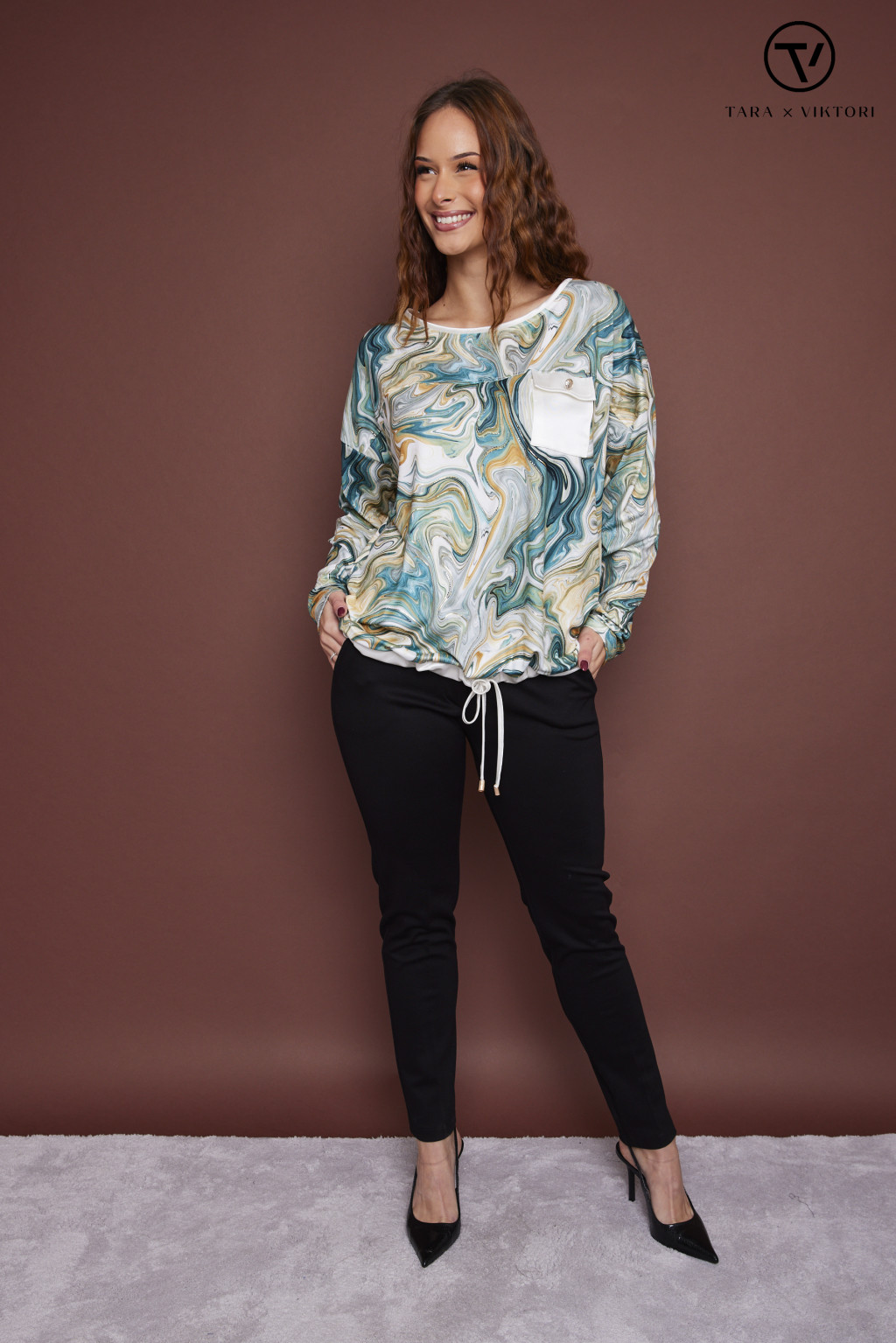 KÓKUSZ női oversized felső , zsebes, arany gombos,alján megkötős,mintás,S-M,Curve Fashion