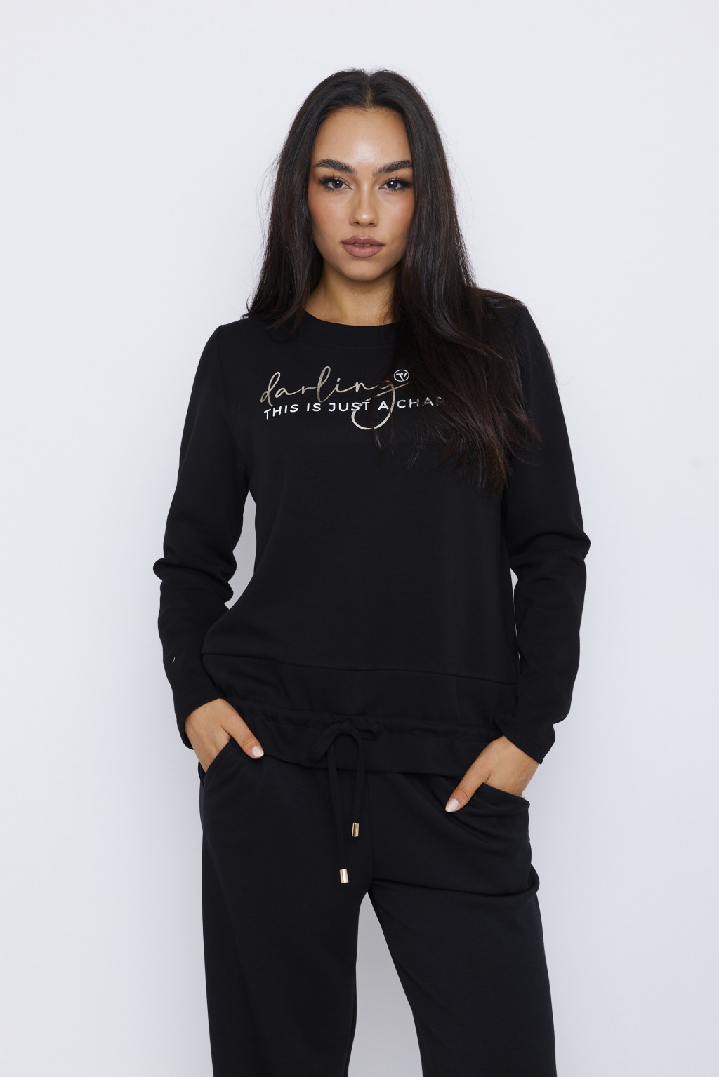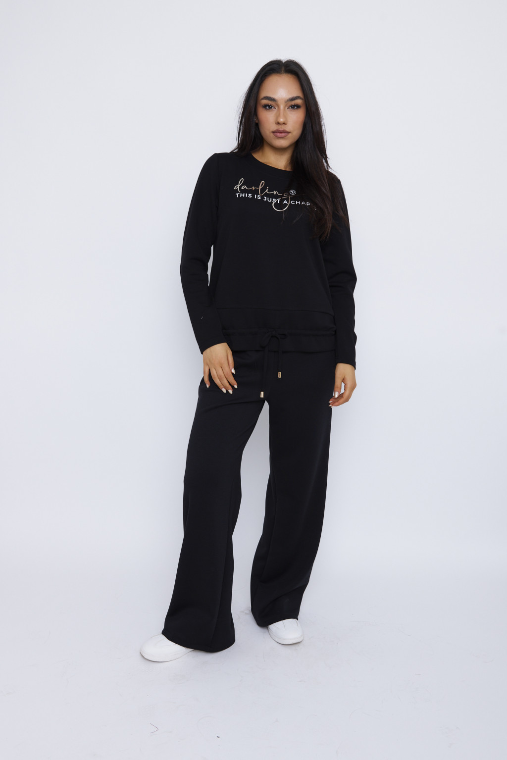 EVORA női pulóver rövid ujjal, gumis aljjal és motiváló felirattal,fekete,L-XL,Tara X Viktori,Curve