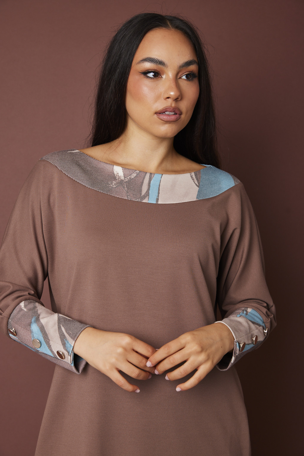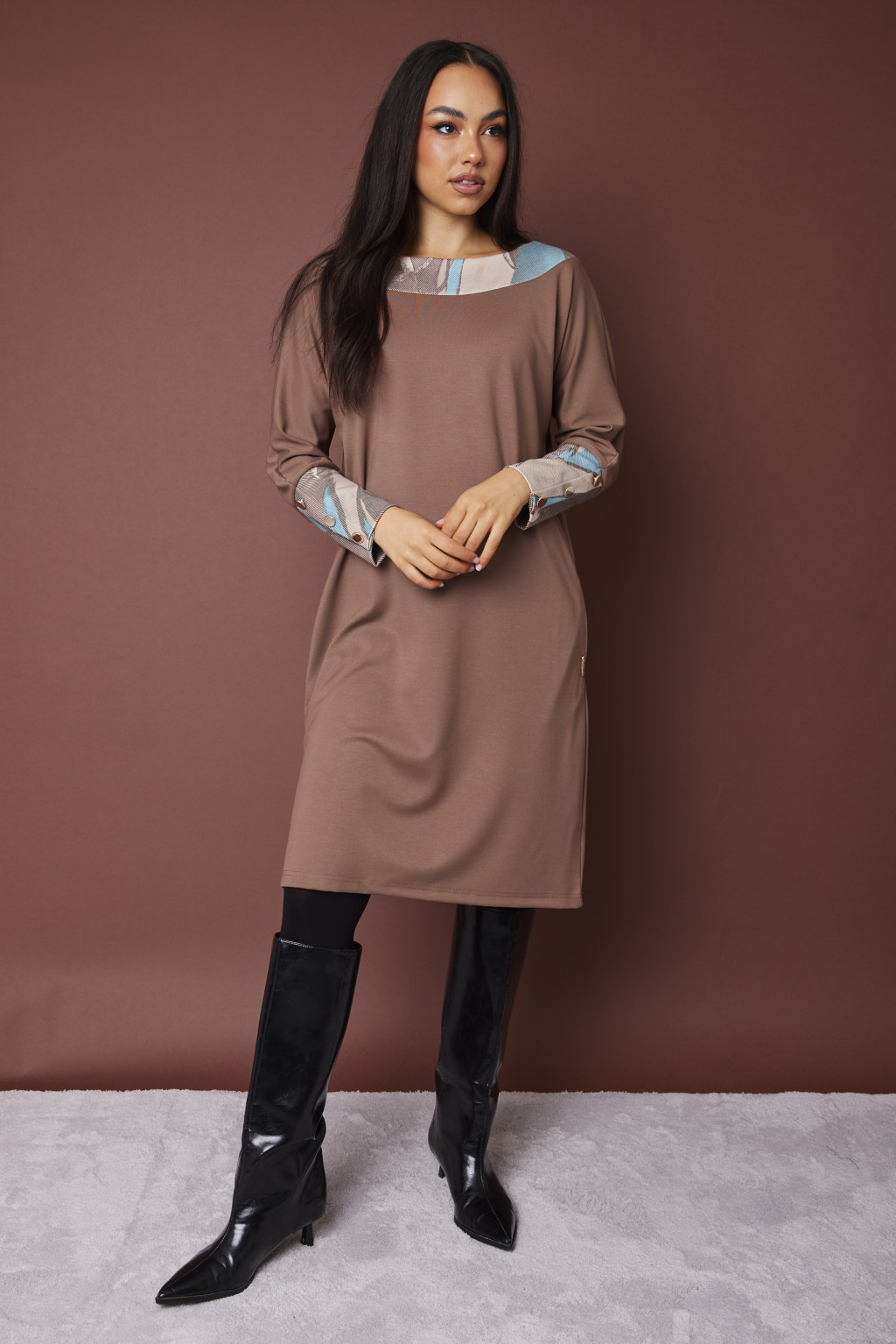 VY női ruha, csónaknyakú, denevérujjú, gombos ruha – mintás,L-XL,Tara X Viktori,Curve Fashion