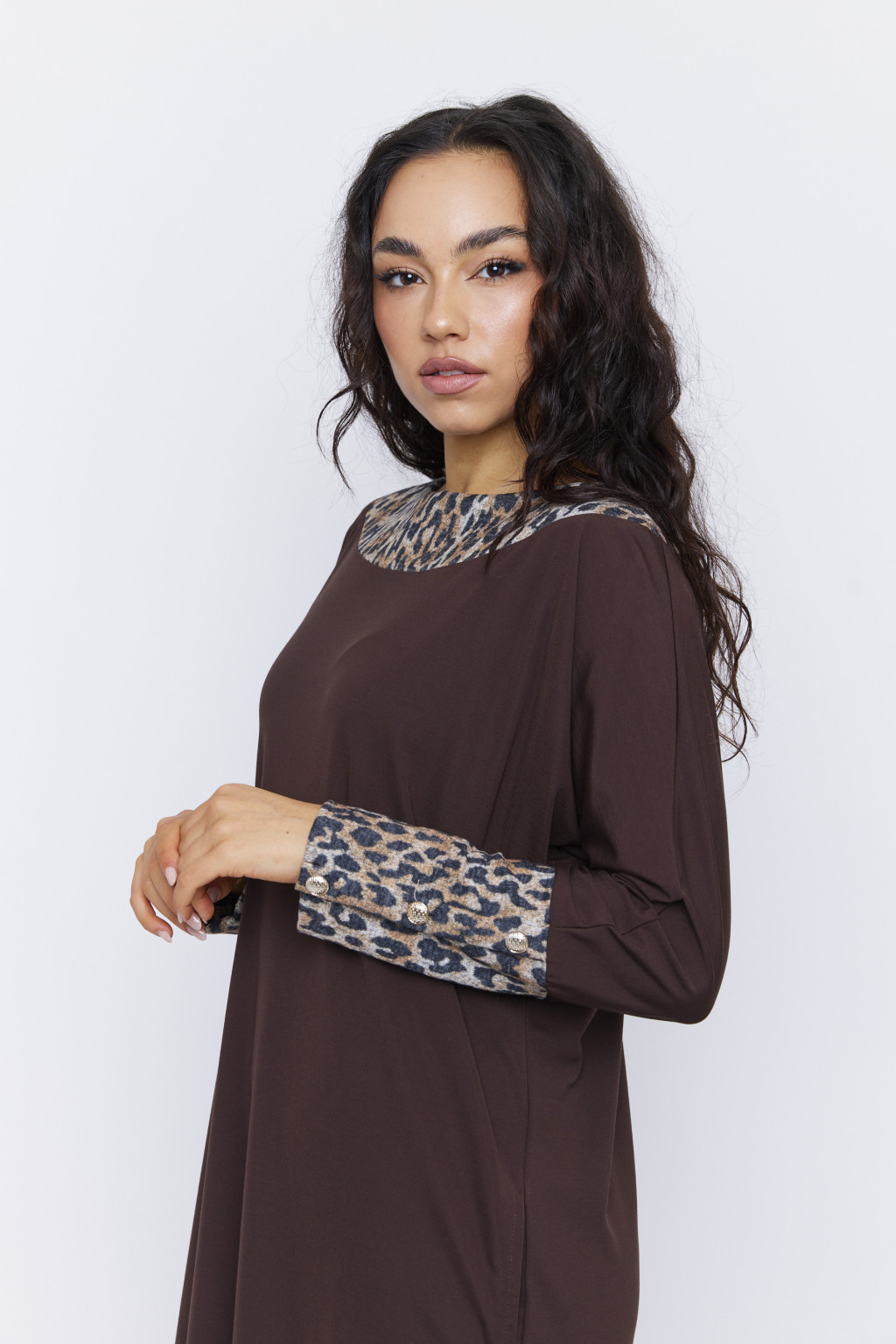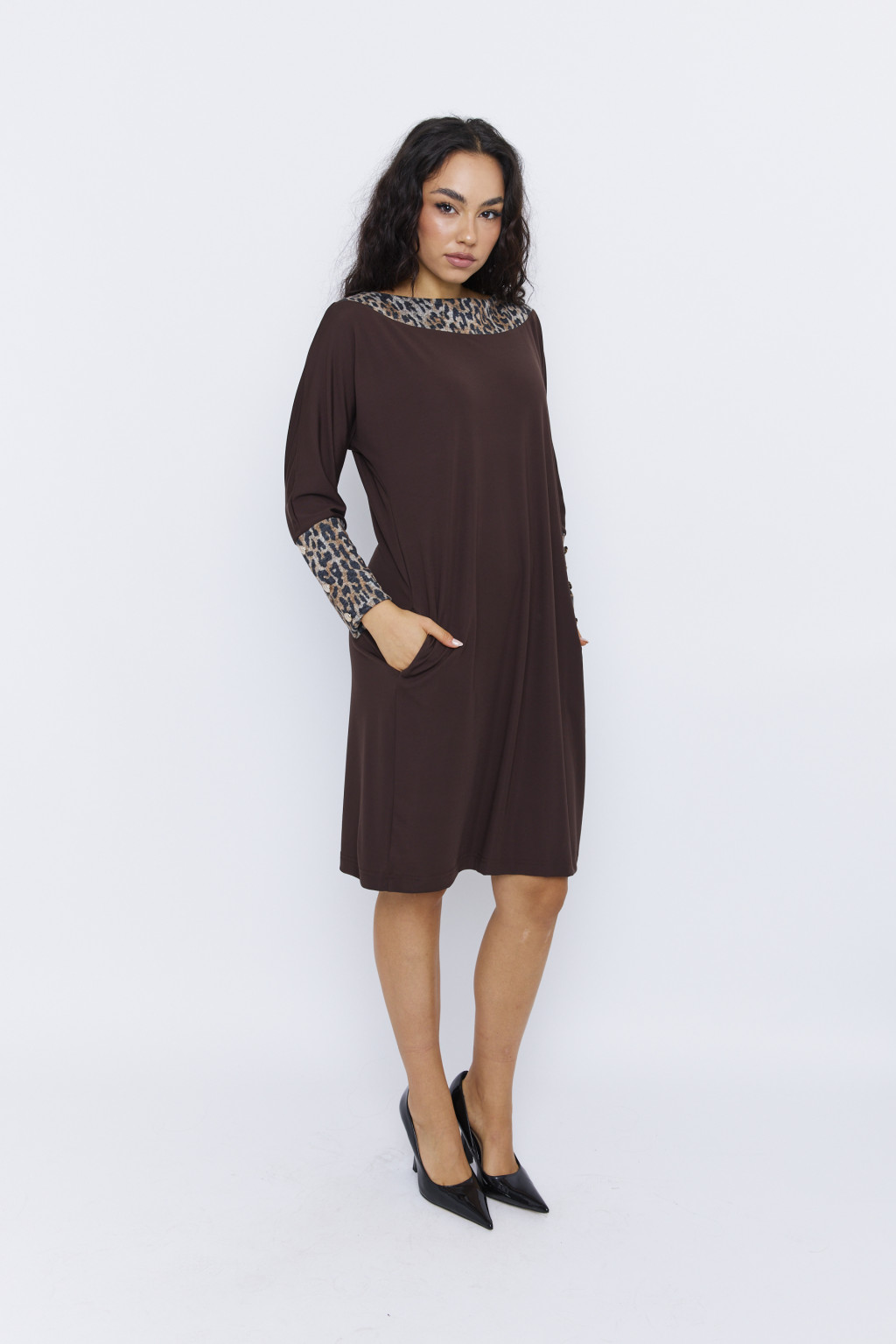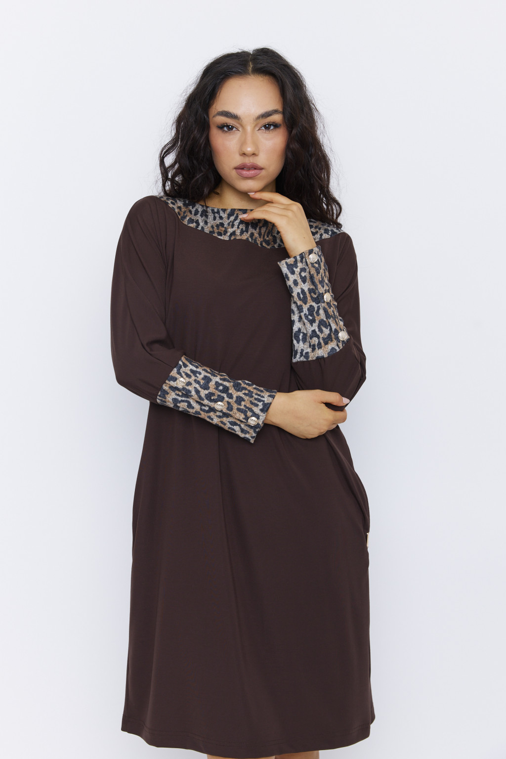 VY női ruha, csónaknyakú, denevérujjú, gombos ruha – mintás,S-M,Tara X Viktori,Curve Fashion