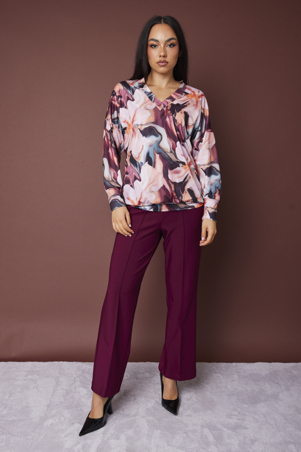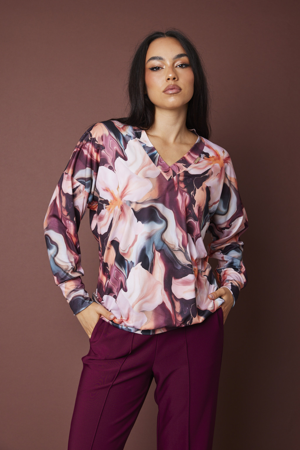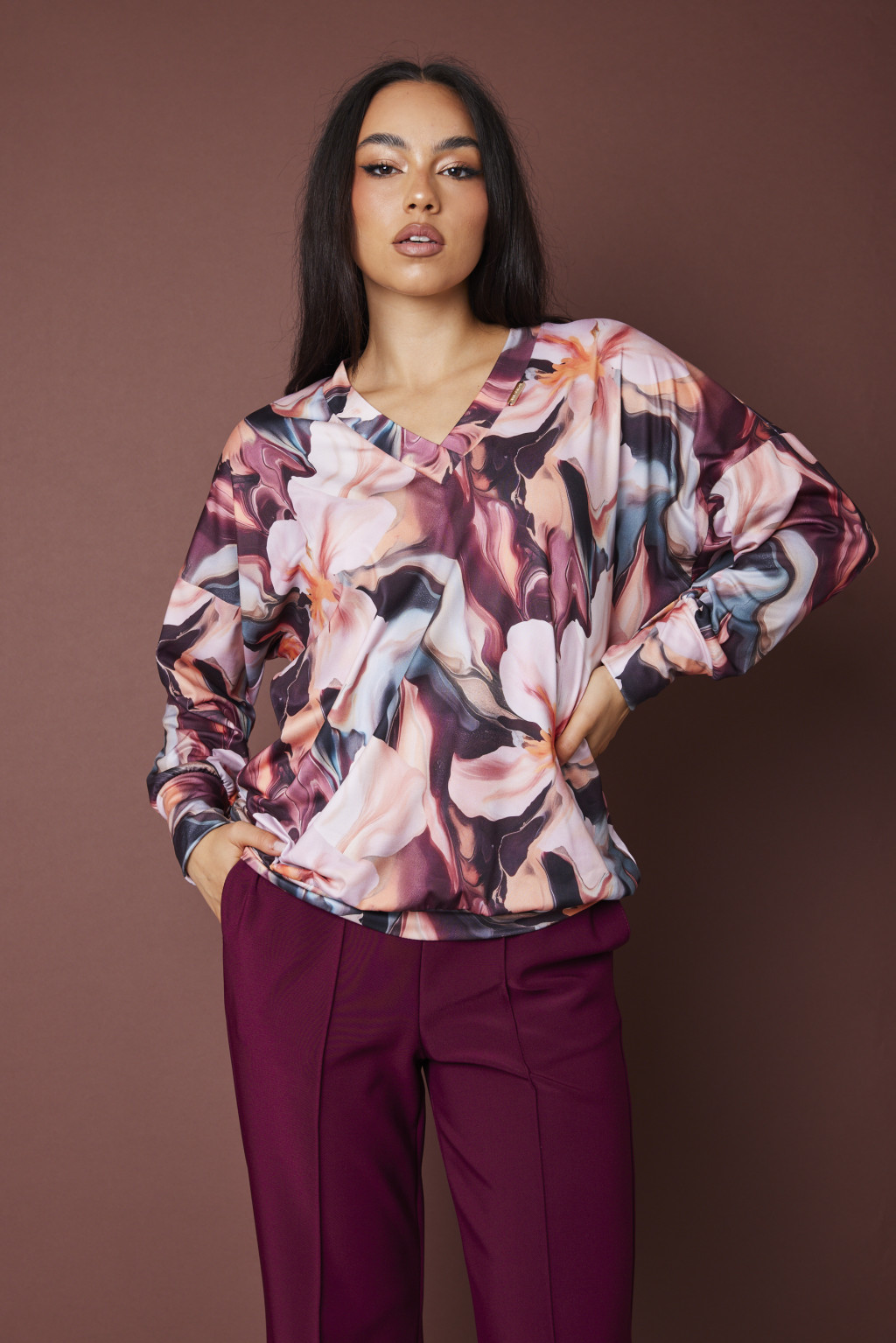 CHANTIL női felső – V-nyakú, passzés ujjú, bővebb szabású,mintás,M,Tara x Viktori,Curve Kollekció