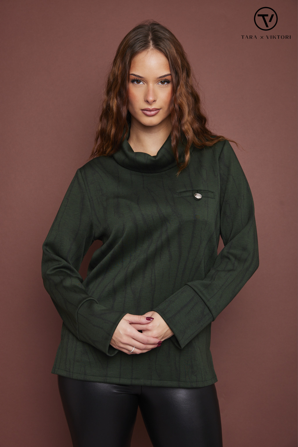 SUSAN női pulóver, kámzsás nyakú, díszzsebes pulóver,M,Tara X Viktori,Curve Kollekció