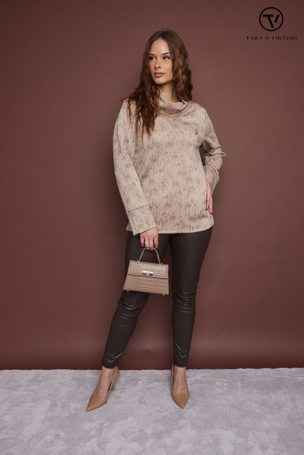 SUSAN női pulóver, kámzsás nyakú, díszzsebes pulóver,bézs,XL,Tara X Viktori,Curve Kollekció