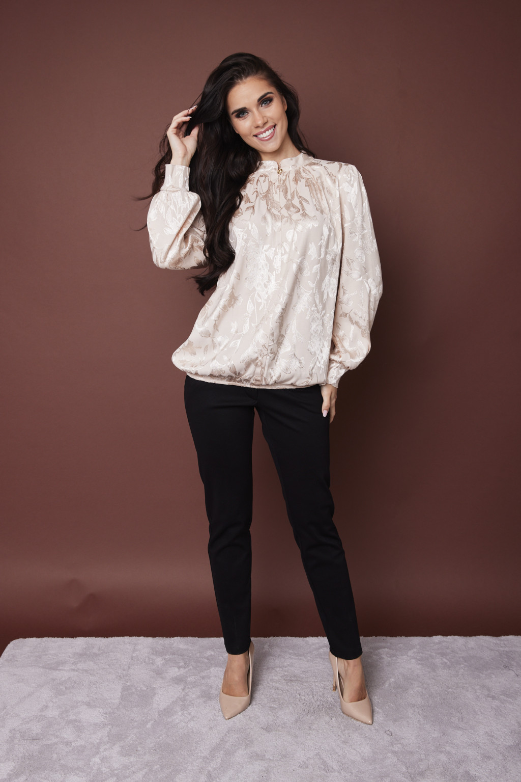 AMARA női szatén tunika állógallérral és díszgombbal.bézs,L-XL,Tara X Viktori,Curve Kollekció